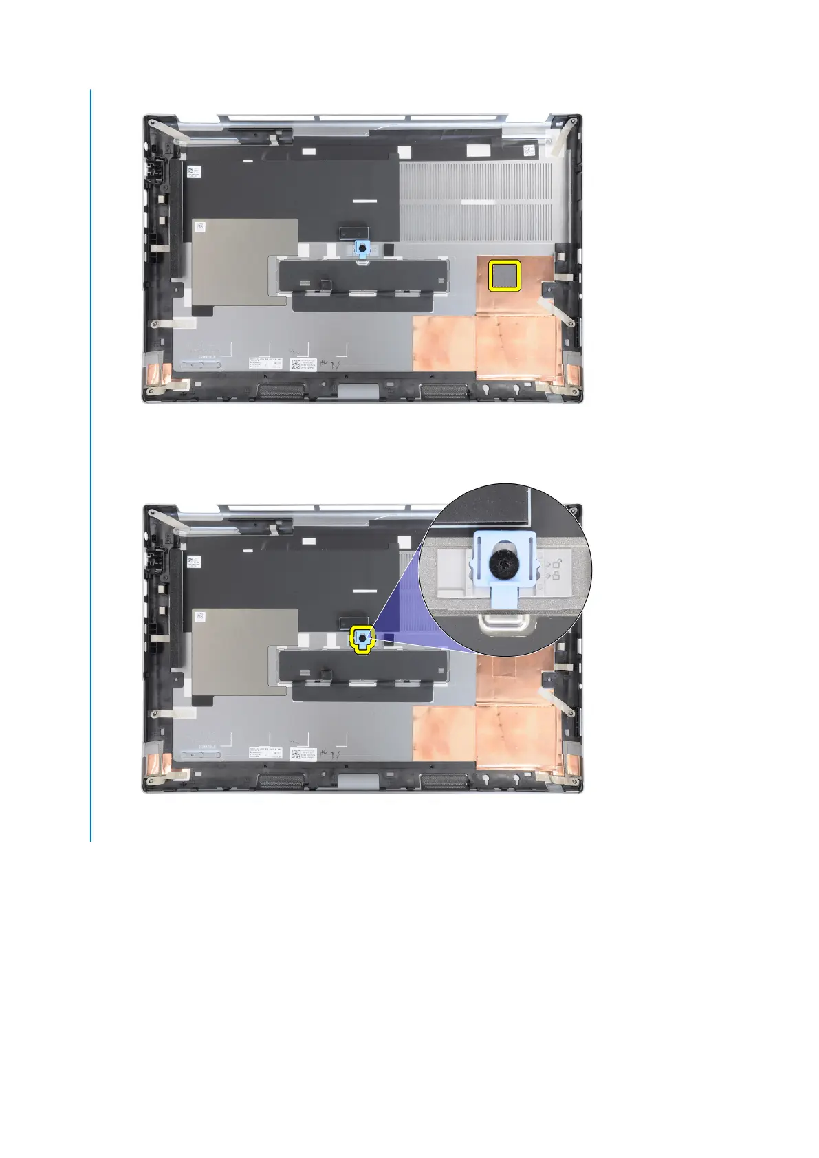ā— Solid-state drive door: For models shipped with an SSD door, use the latch on the base cover to lock/unlock the