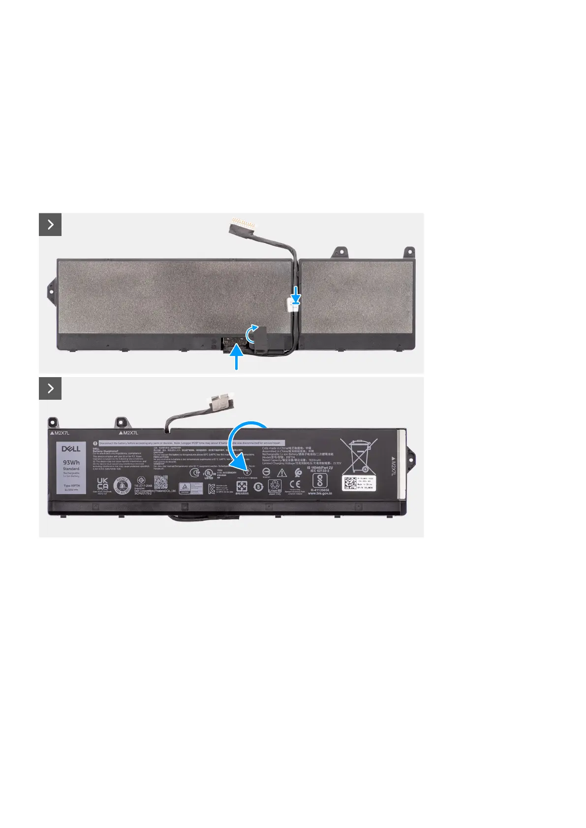 4. Unroute the battery cable and disconnect it from its connector on the battery.
