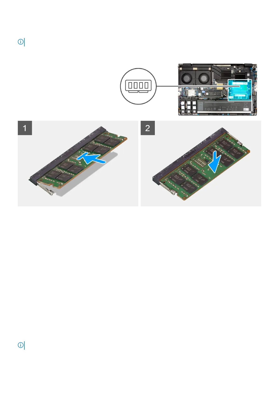2. Slide the memory module firmly into the slot at an angle and press the memory module down until it clicks into place.