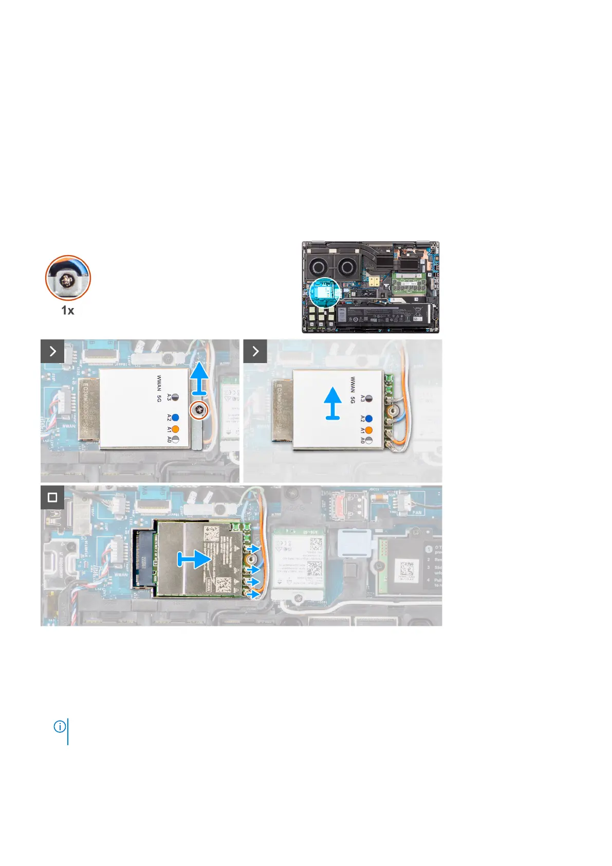 3. Disconnect the antenna cables from the connector on the WWAN card.