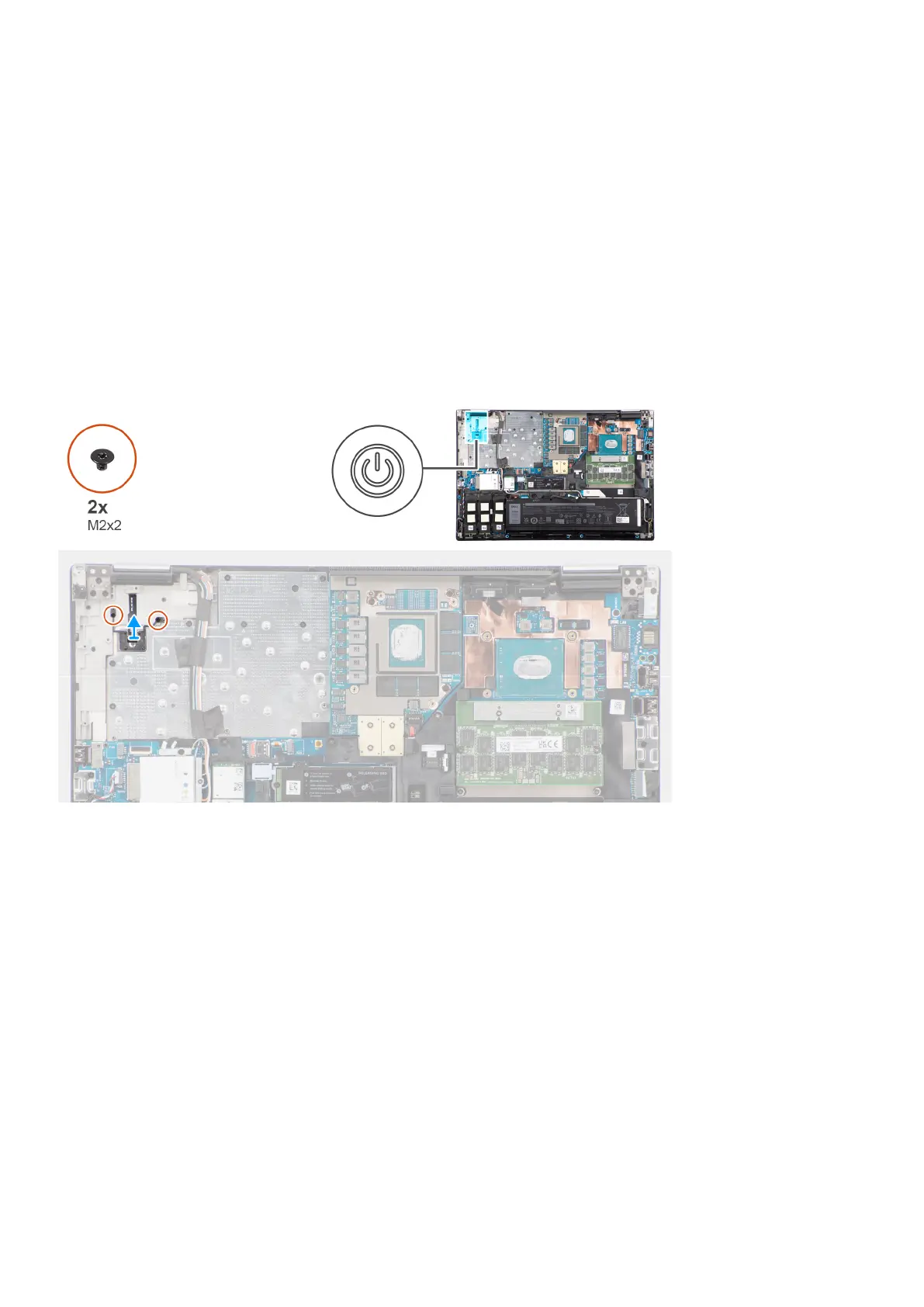 1. Remove the two (M2x2) screws that secure the power button in its slot on the computer.