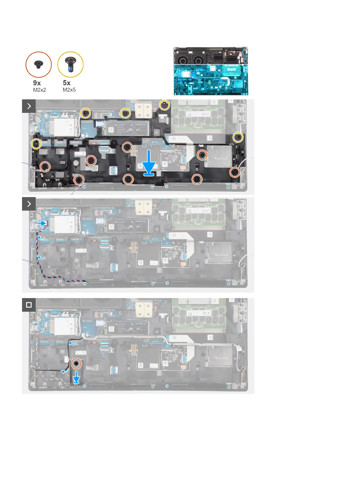 3. Route the WLAN antennas and speaker cable using the routing guide on the inner frame.