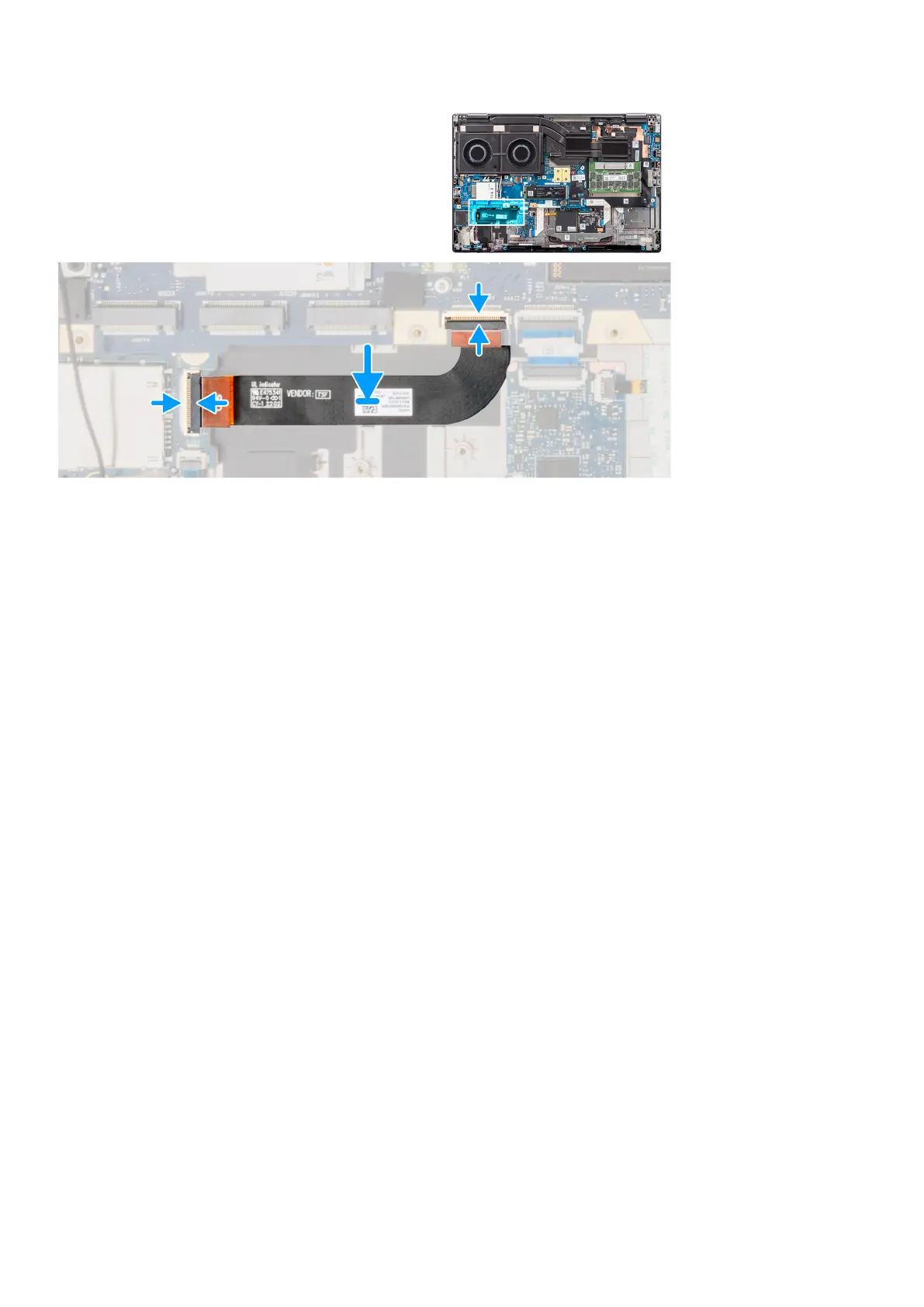 2. Connect the SD card reader FPC to its connectors on the SD card reader and system board.