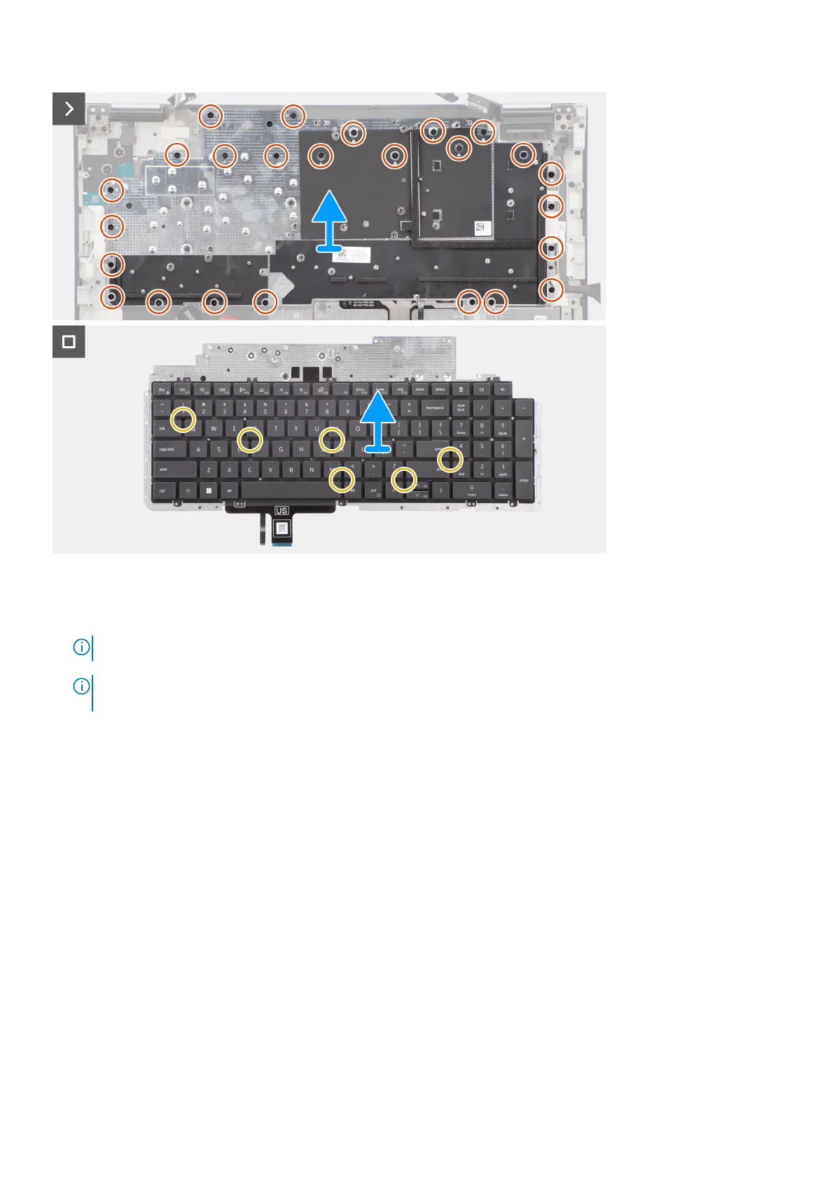 3. Remove the 25 (M2x2.5) screws that secure the keyboard support place to the palm rest.