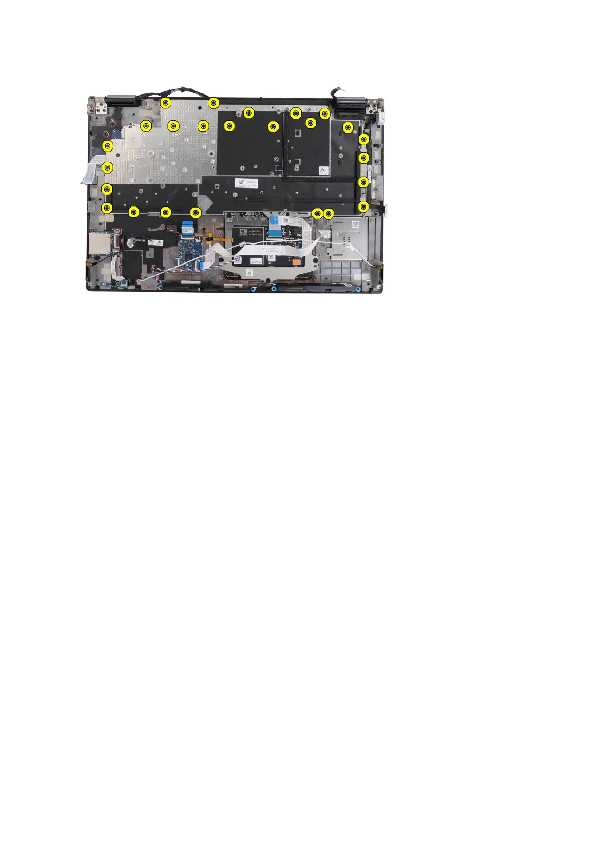 6. Remove the six (M2x2) screws that secure the keyboard to the computer chassis.