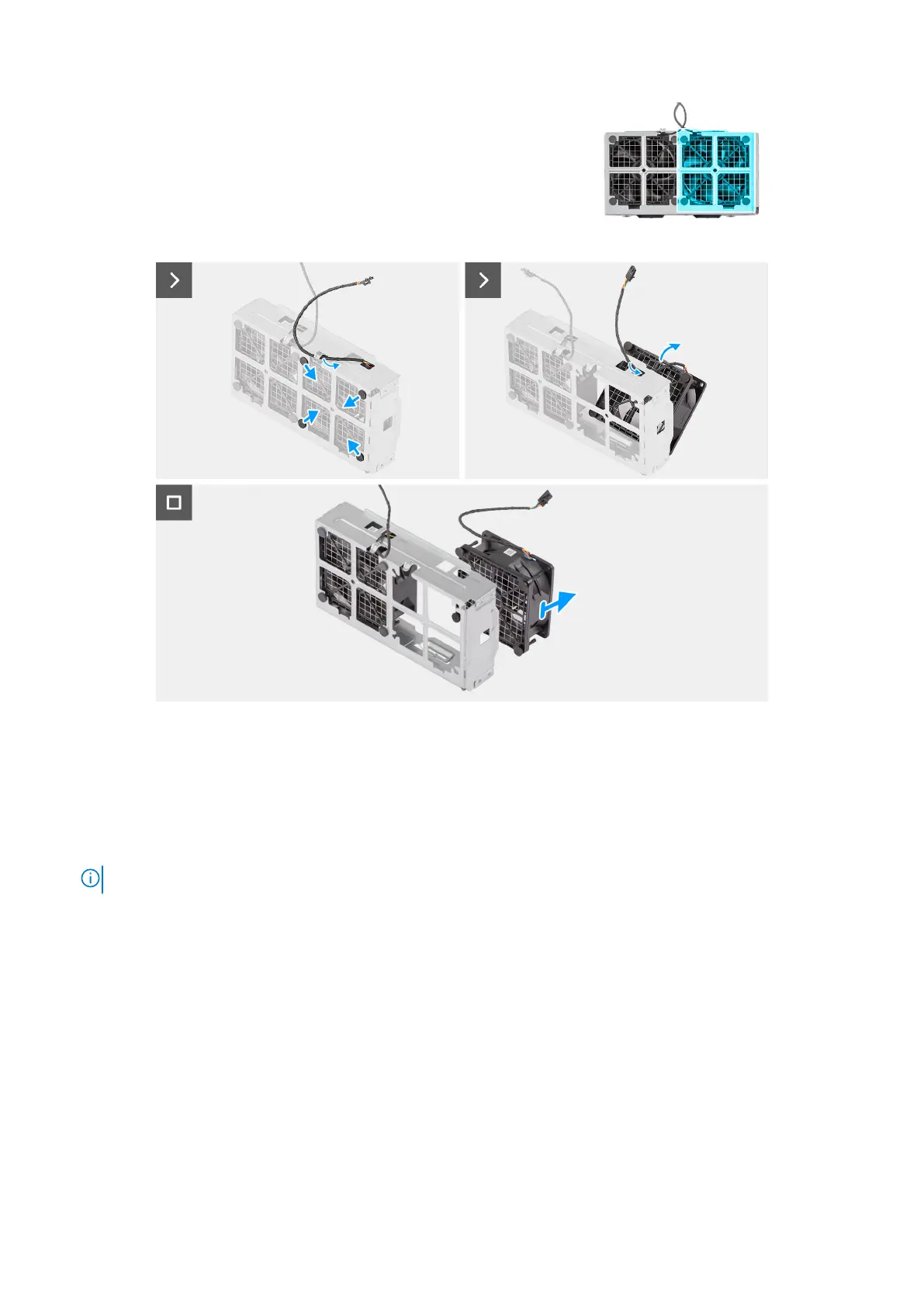 1. Unroute the fan cable from the routing guide on the fan assembly.