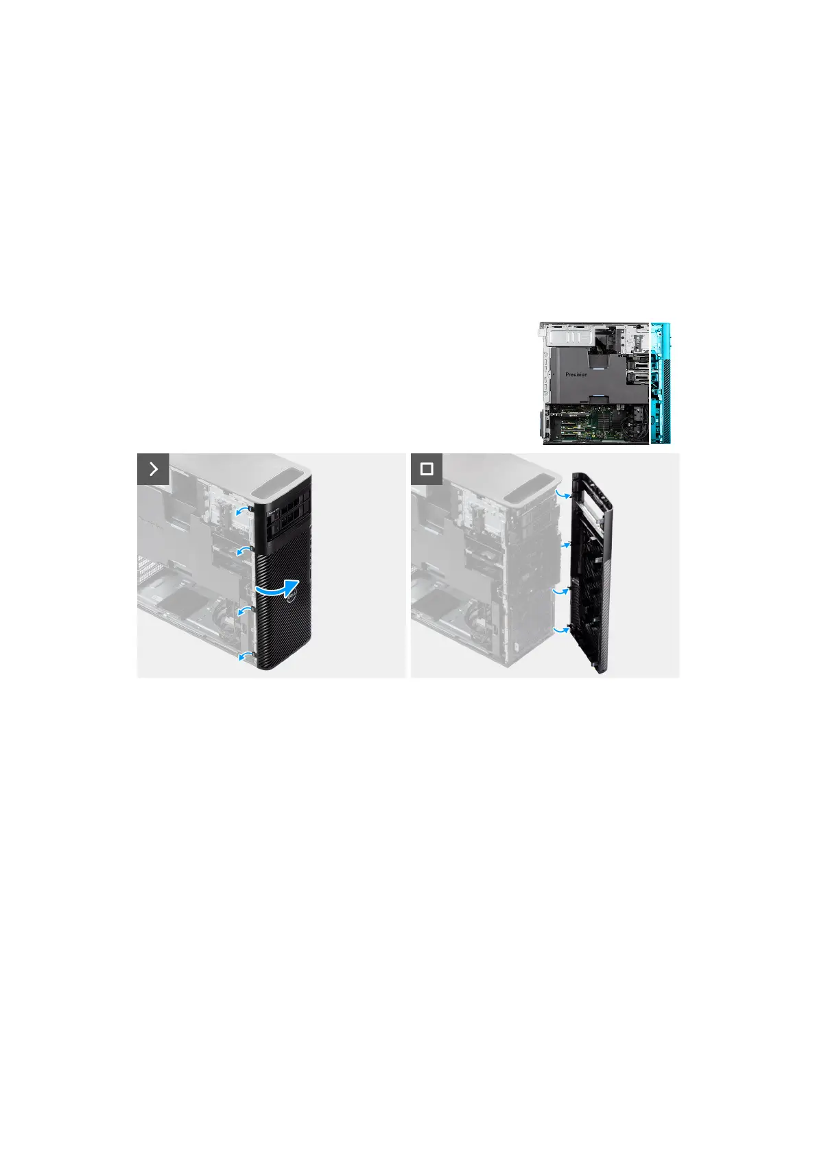 2. Slightly pull the front bezel and gently rotate to release the other tabs on the bezel from the slots in the chassis.