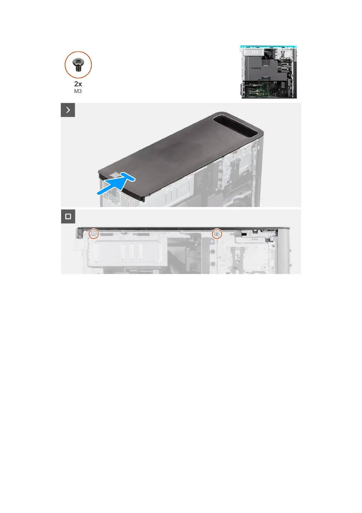 3. Replace the two (M3) screws to secure the top cover to the chassis.