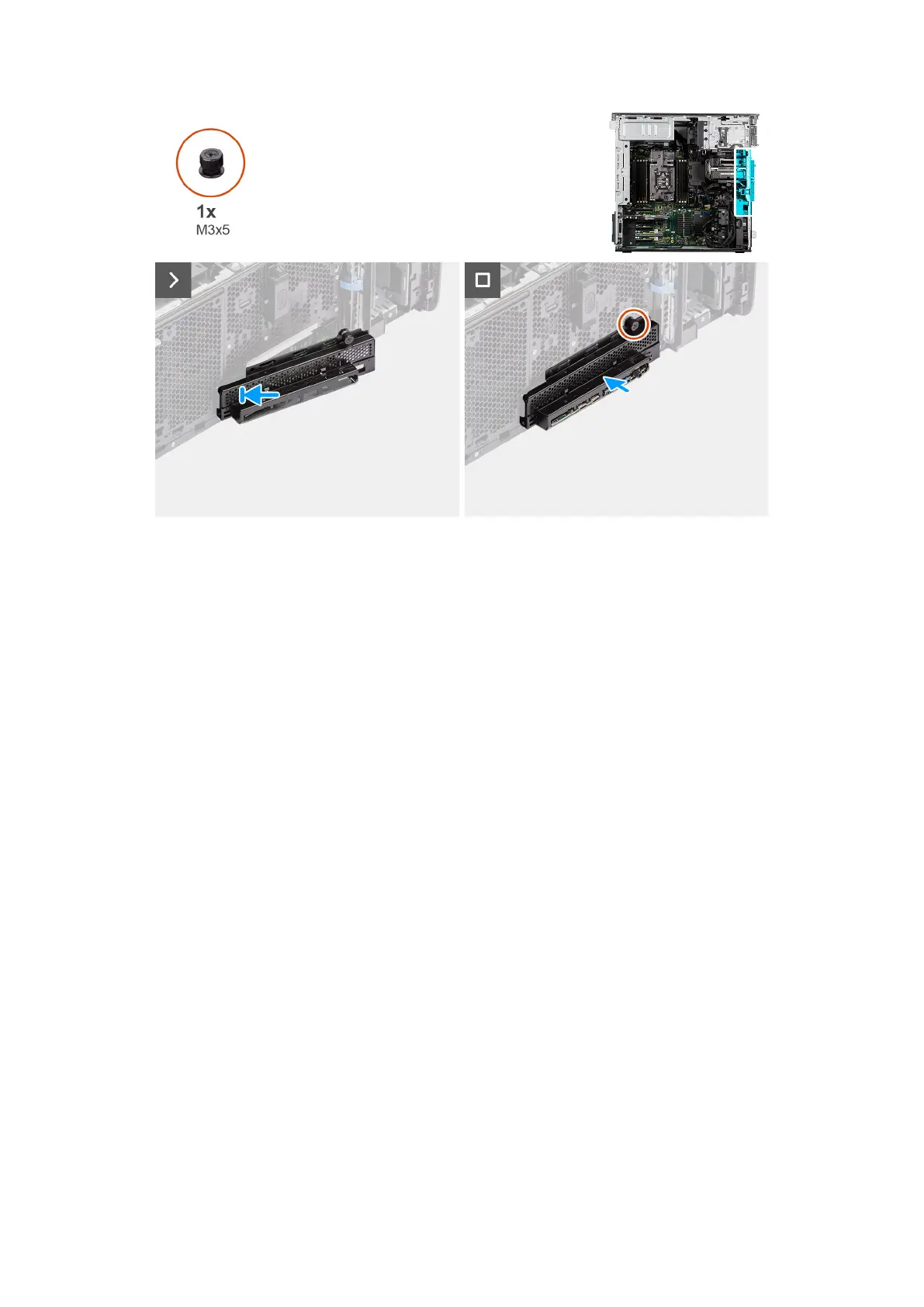 2. Tighten the thumbscrew (M3x5) to secure the front I/O bracket to the chassis.