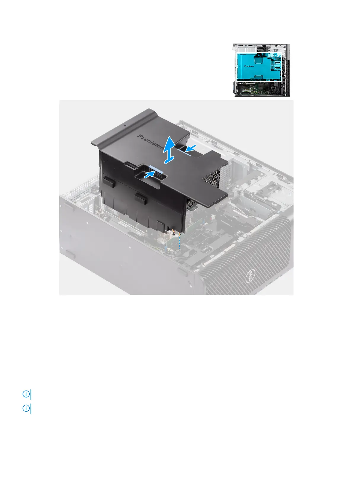 NOTE: Route all the power cables through the bottom air shroud cover to prevent the air shroud installation interference.
