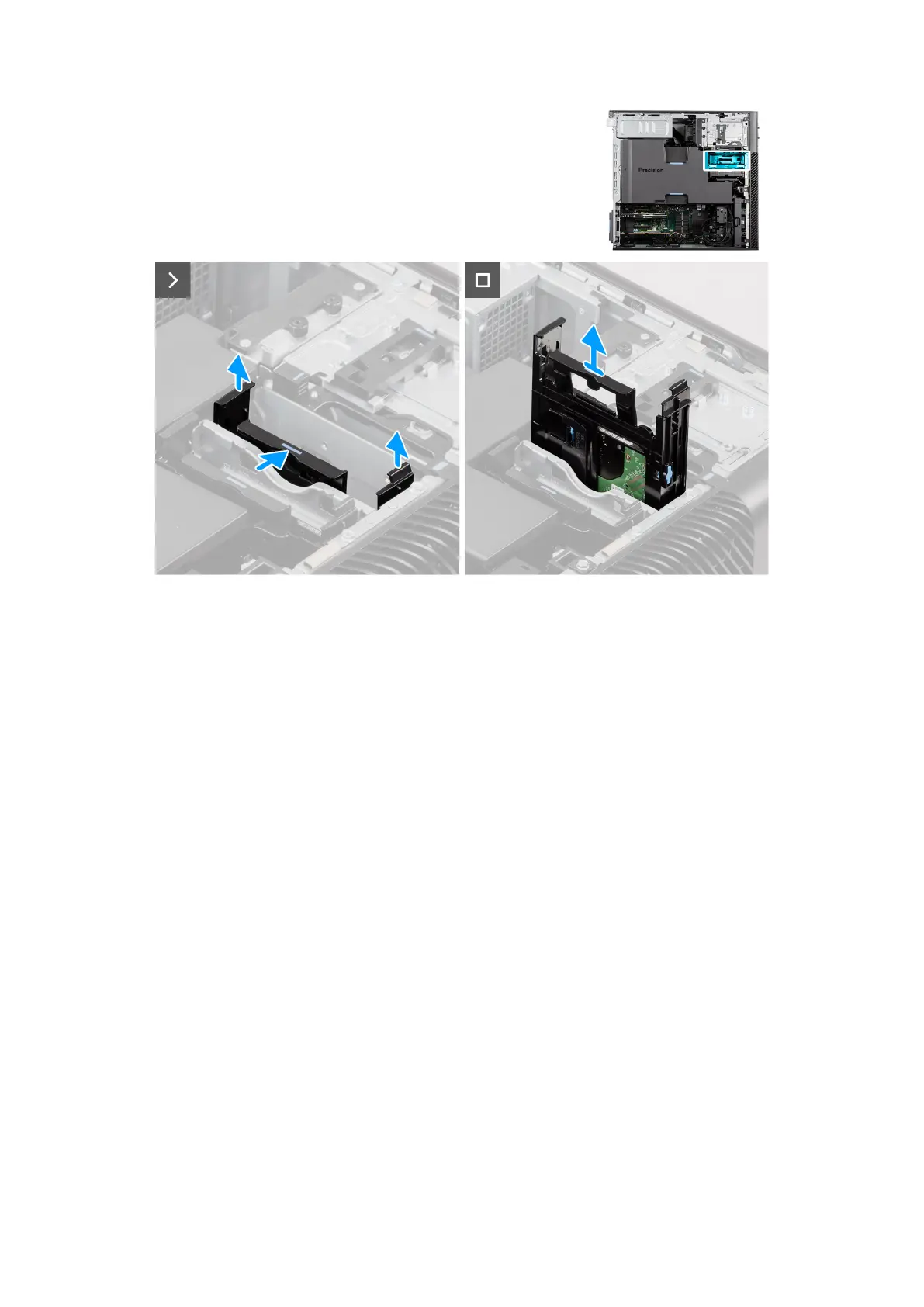 The following images indicate the location of the 2.5-inch hard-drive bracket and provide a visual representation of the removal
