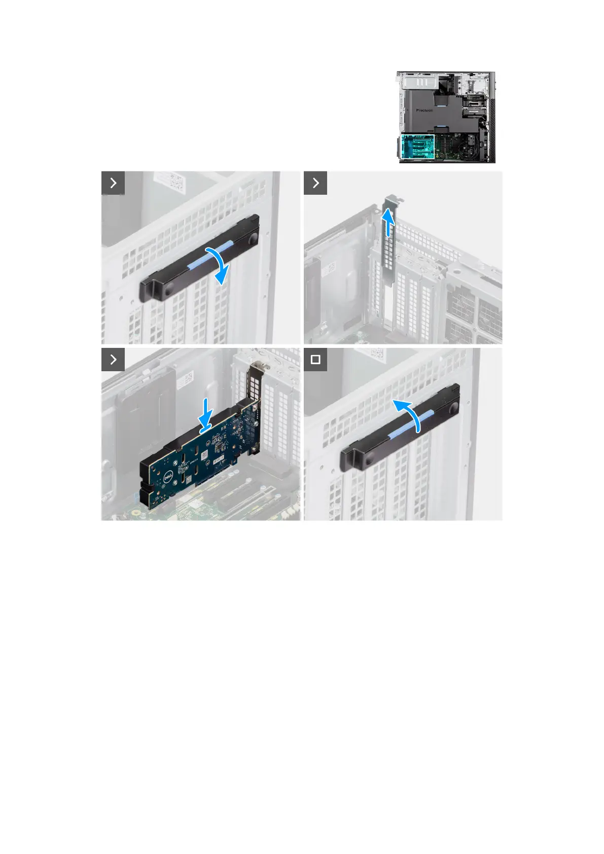 4. Lift the PCIe latch to close the PCIe door.