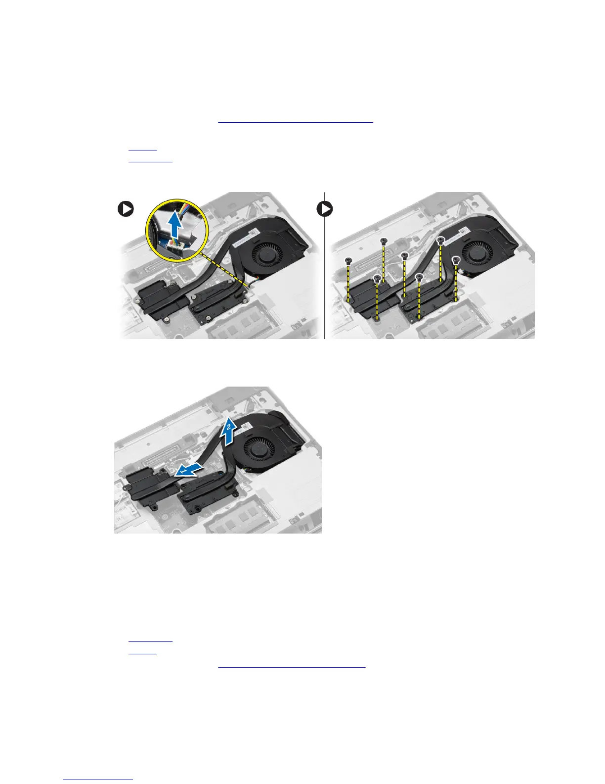 3. Disconnect the fan cable and remove the screws that secure the heat-sink assembly to the system