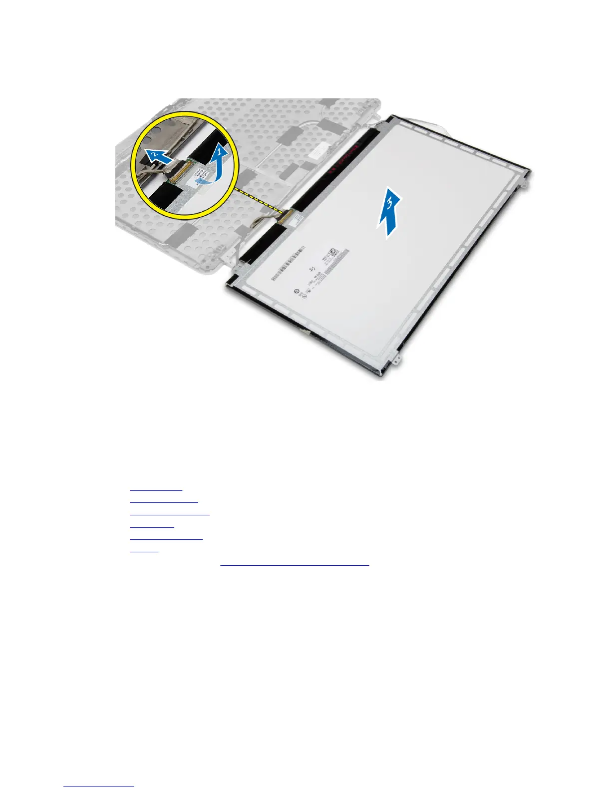 5. Peel off the LVDS cable-connector tape and disconnect the LVDS cable from the display panel.