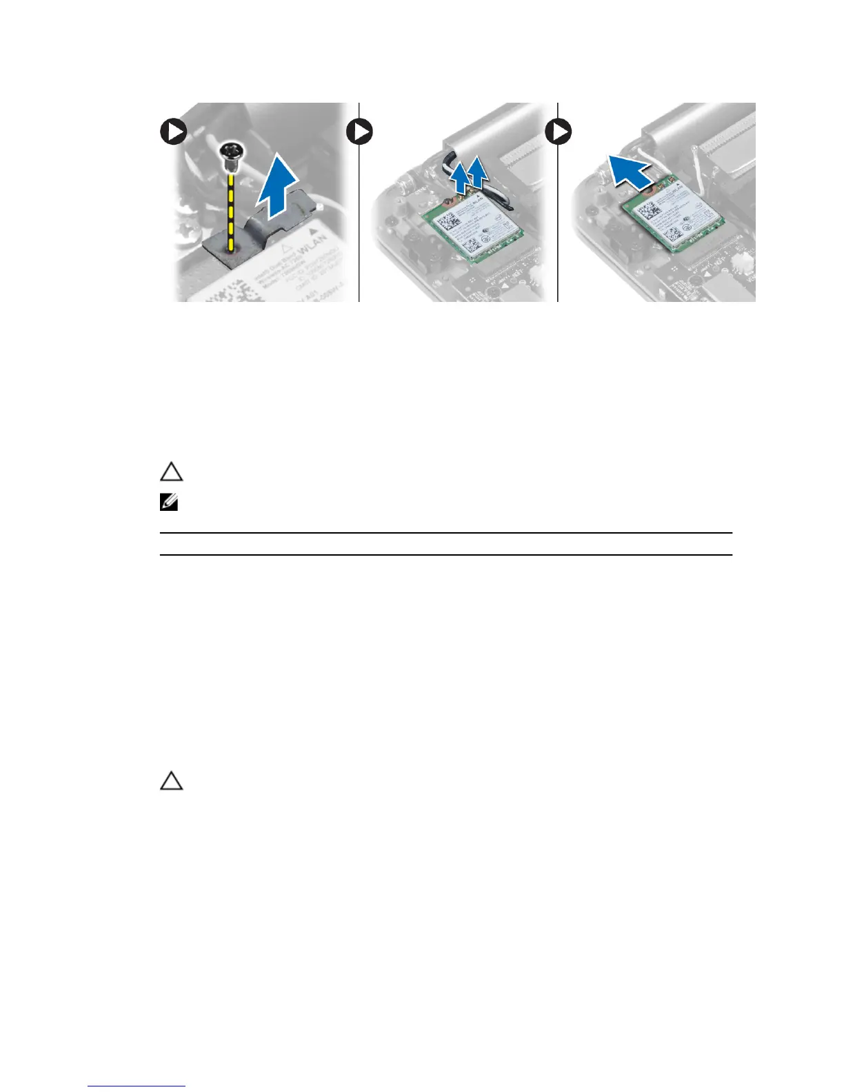 CAUTION: To avoid damage to the WLAN card, do not place any cables under it.