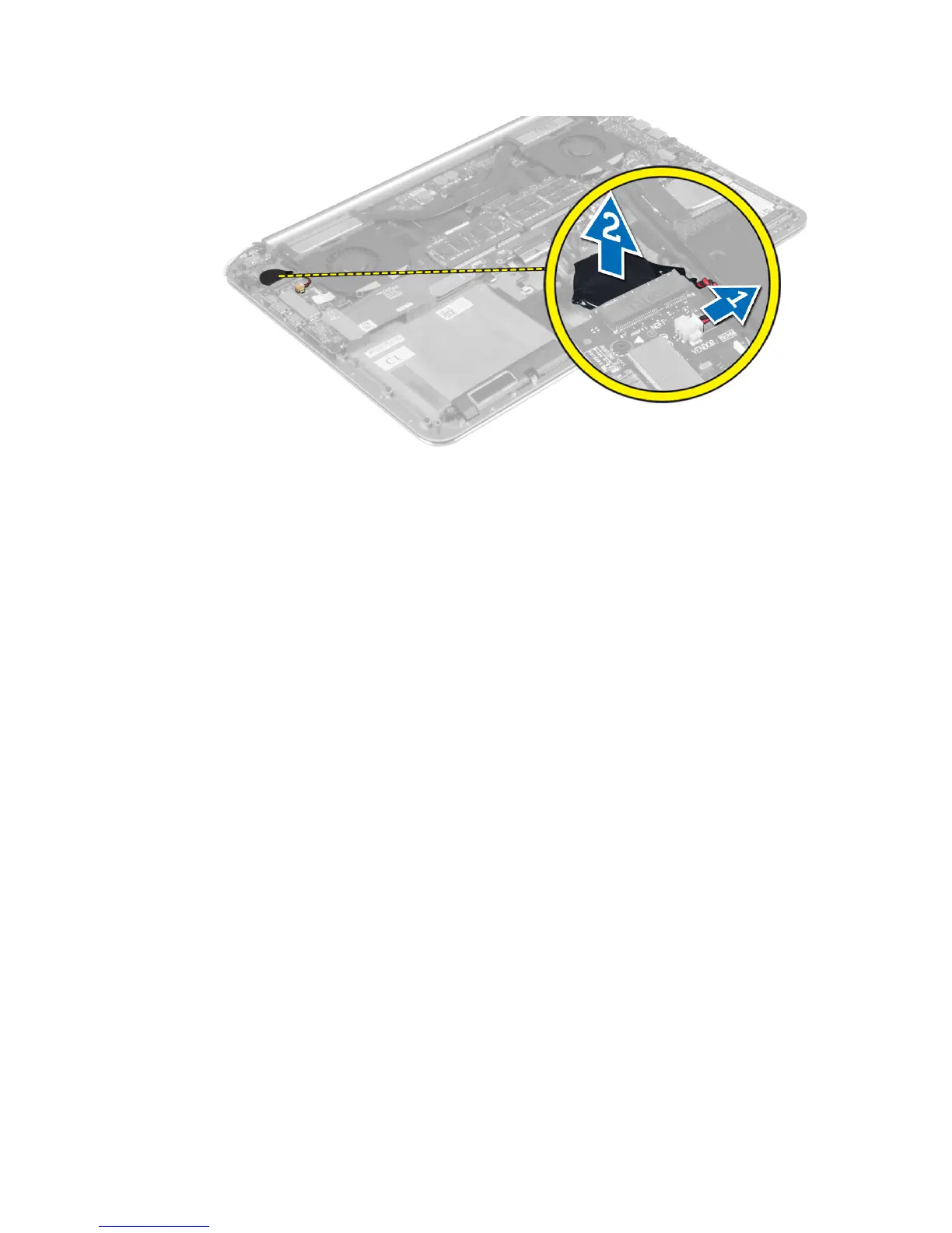 3. Disconnect the I/O-board cable from the system board and I/O board.