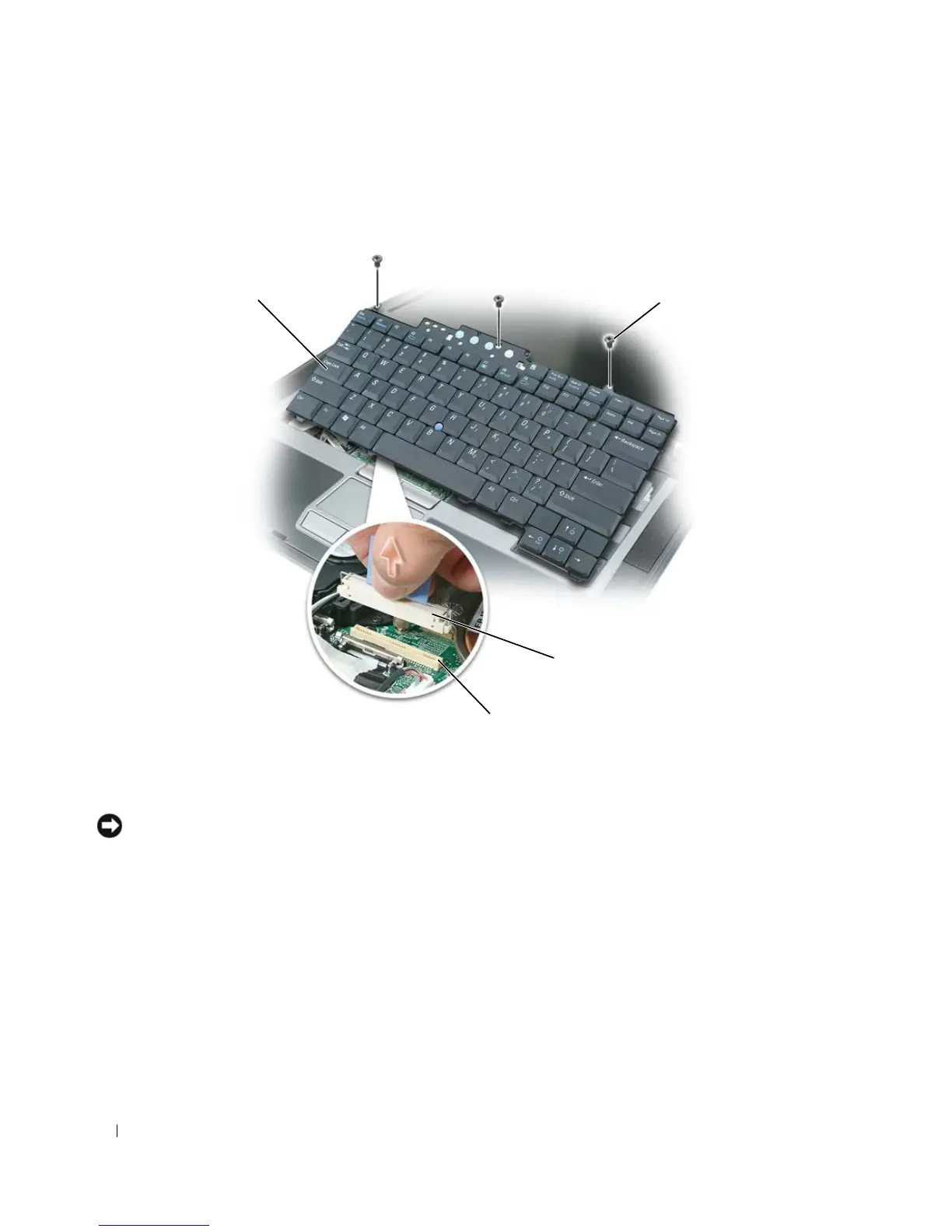 1 keyboard 2 keyboard screws 3 cable connector