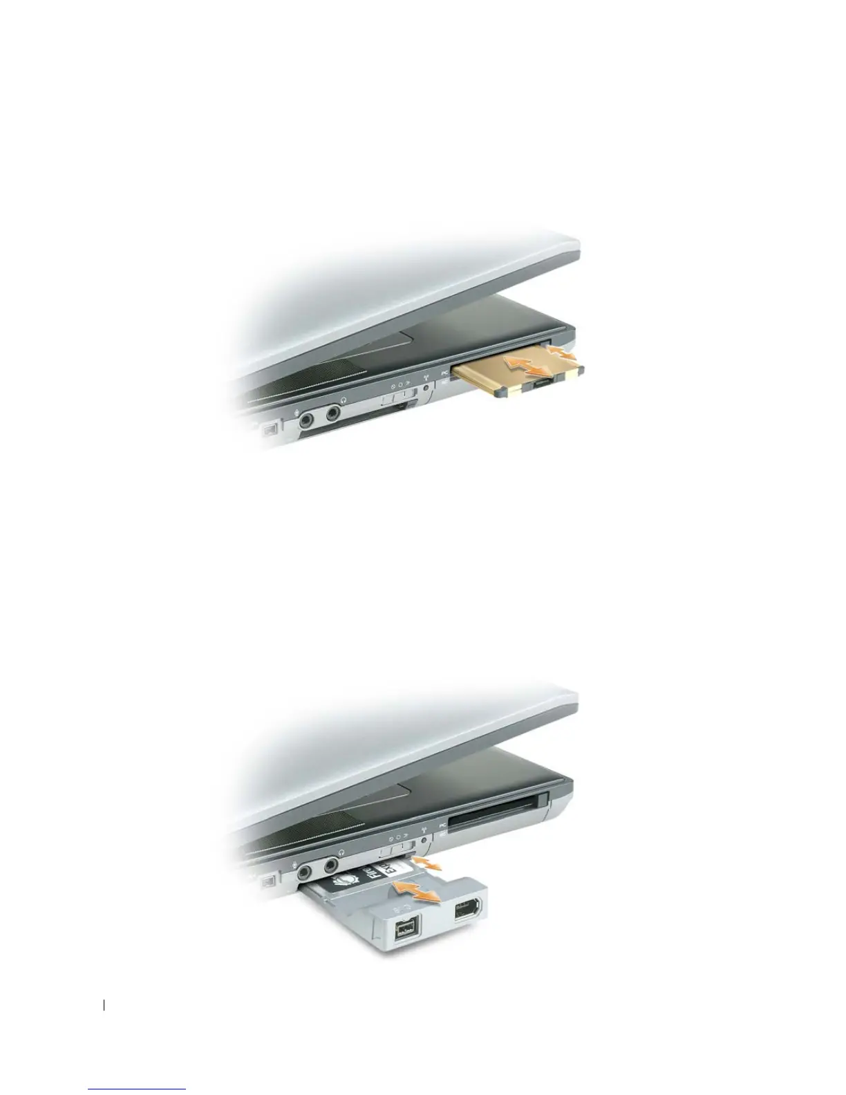 Hold the card with its orientation symbol pointing into the slot and the top side of the card facing up.