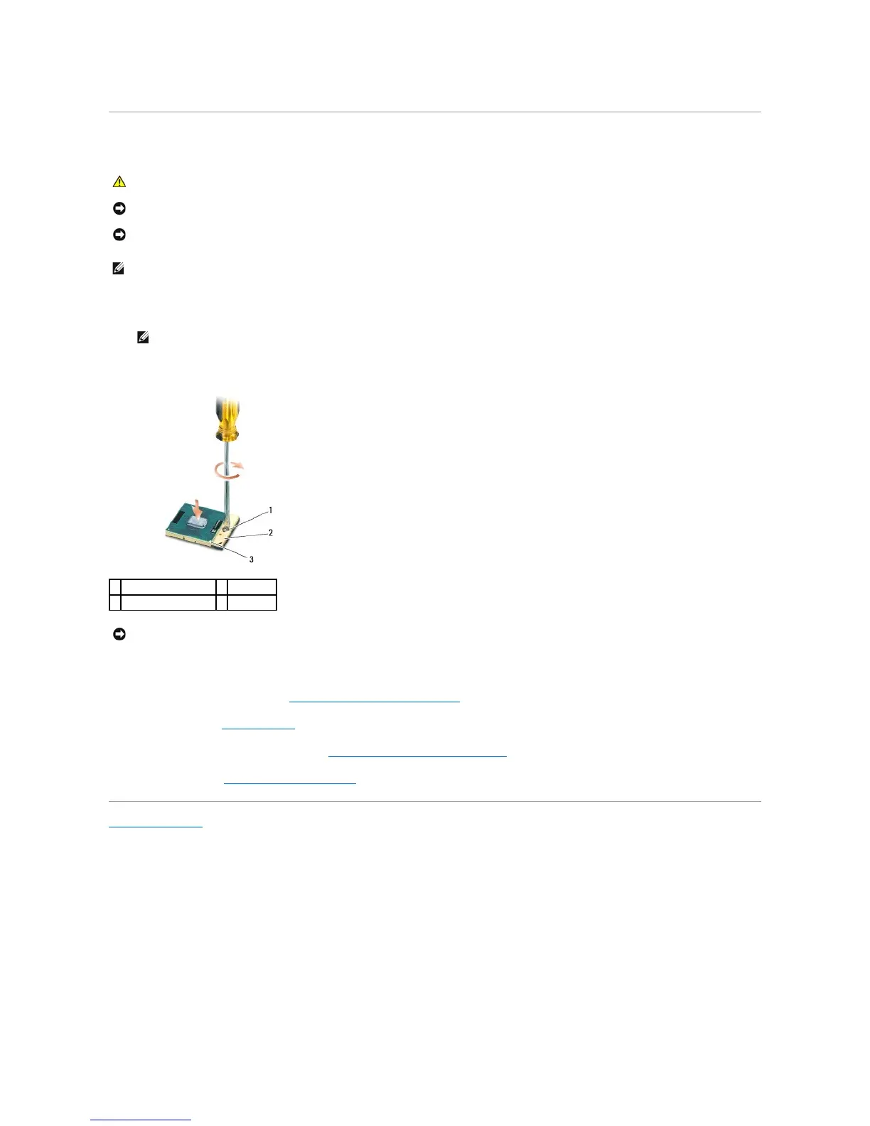 NOTICE: To avoid damage to the processor, hold the screwdriver so that it is perpendicular to the processor when turning the cam screw.