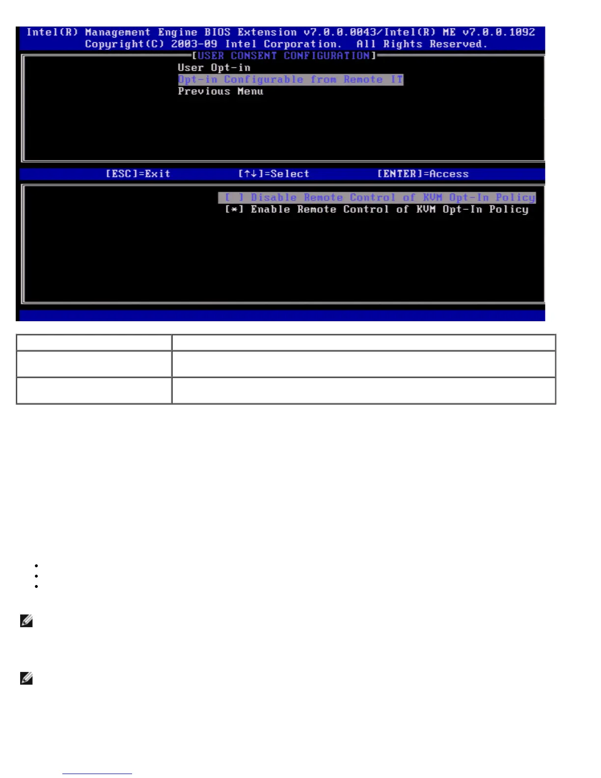 Under the User Consent Configuration page select Previous Menu and press <Enter>.