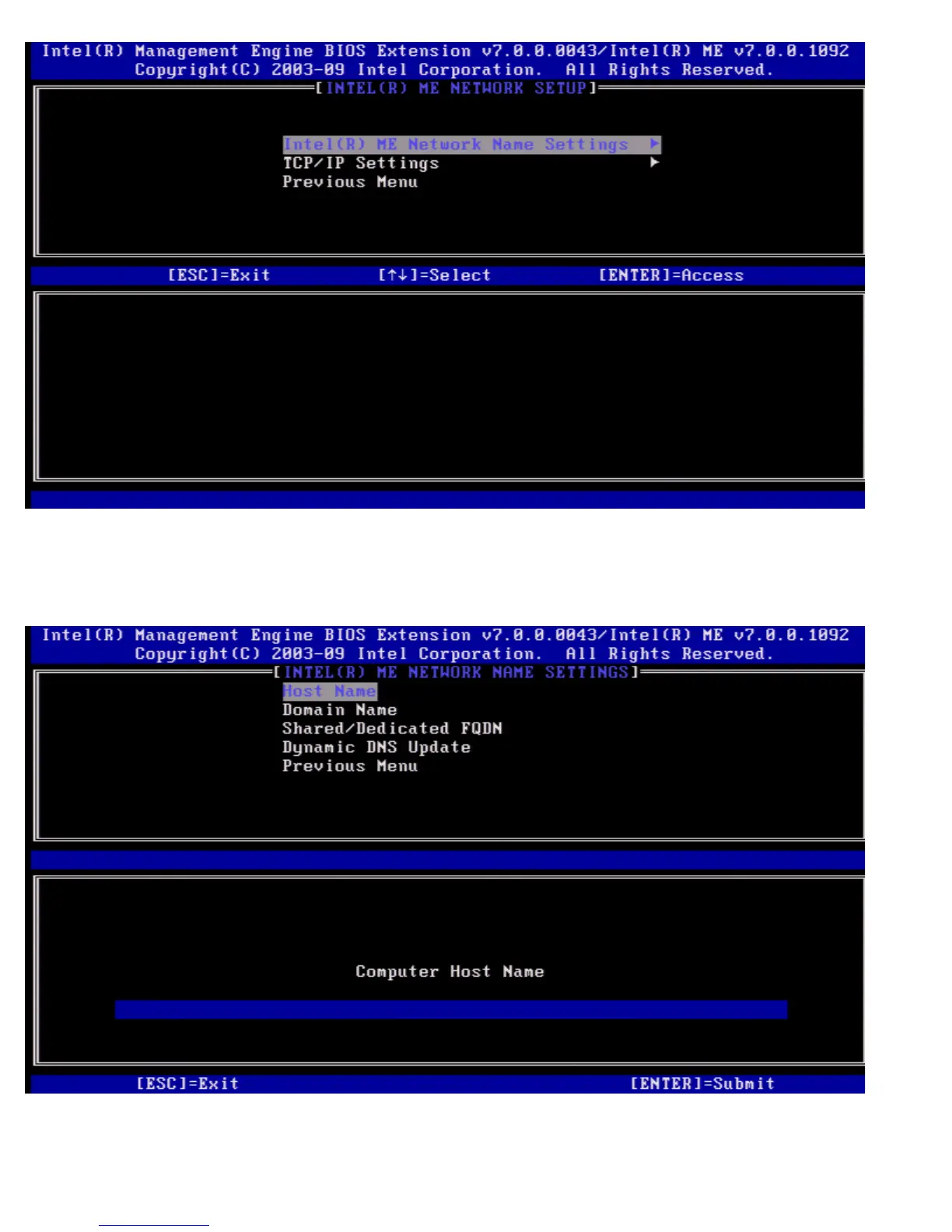 Under the Intel ME Network Name Settings select Host Name and press <Enter>.