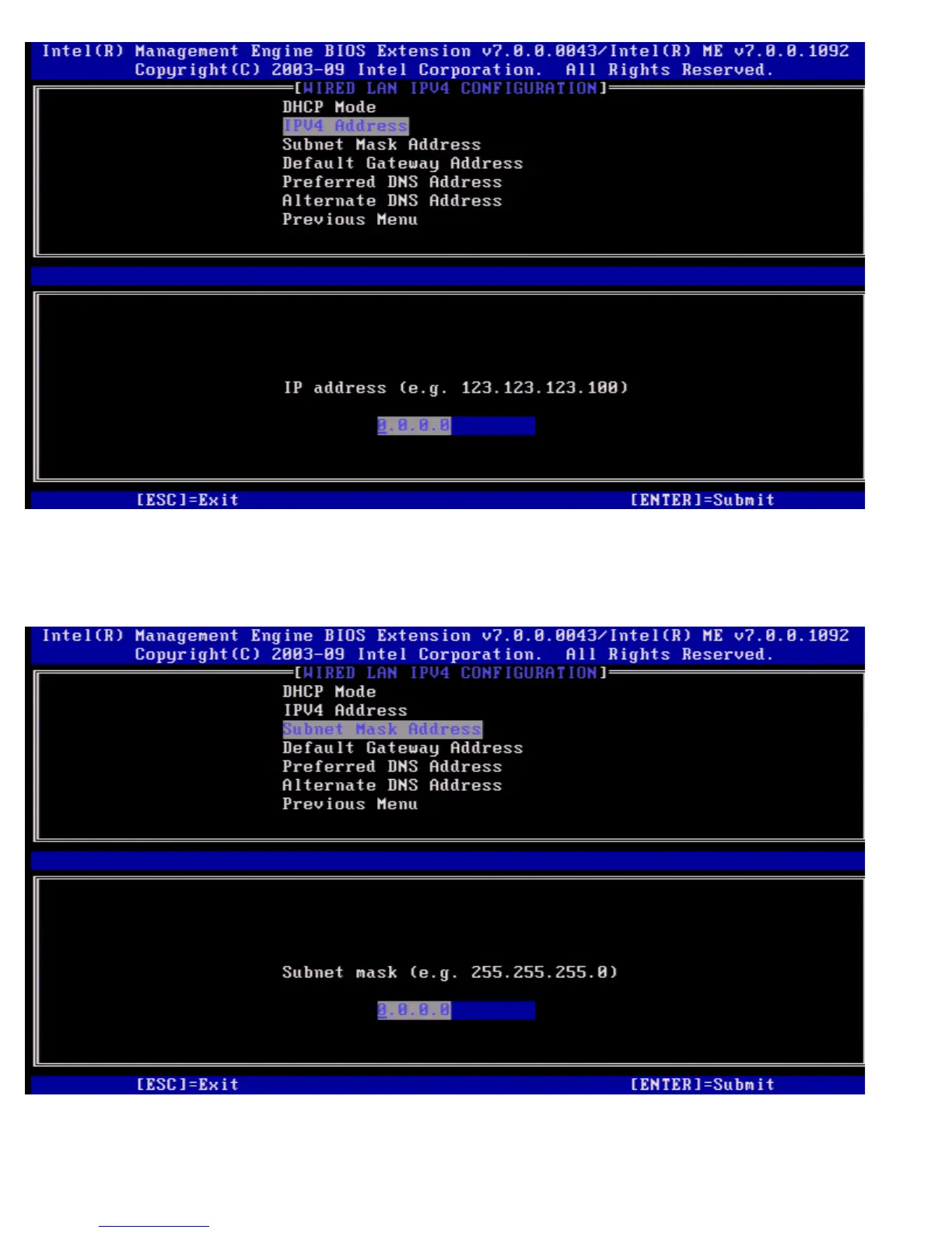 Select Subnet Mask Address and press <Enter>.
