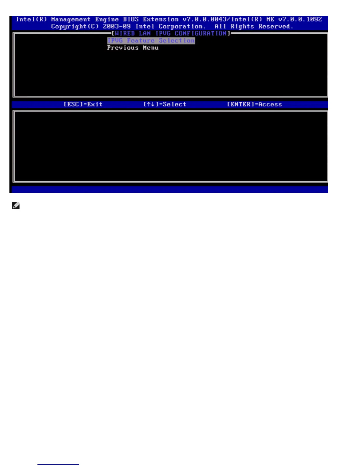 Under the Wired LAN IPv6 Configuration select IPv6 Feature Selection and press <Enter>.