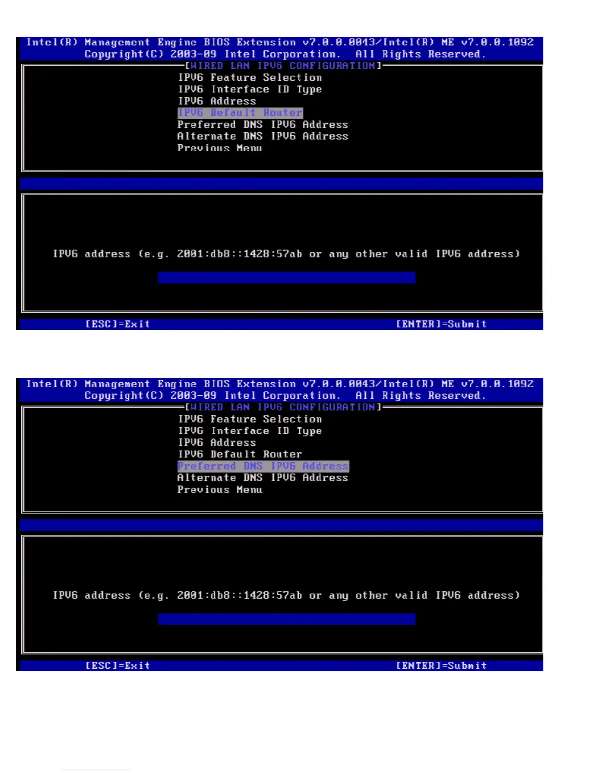 Under the Wired LAN IPv6 Configuration select Alternate DNS IPv6 Address and press <Enter>.