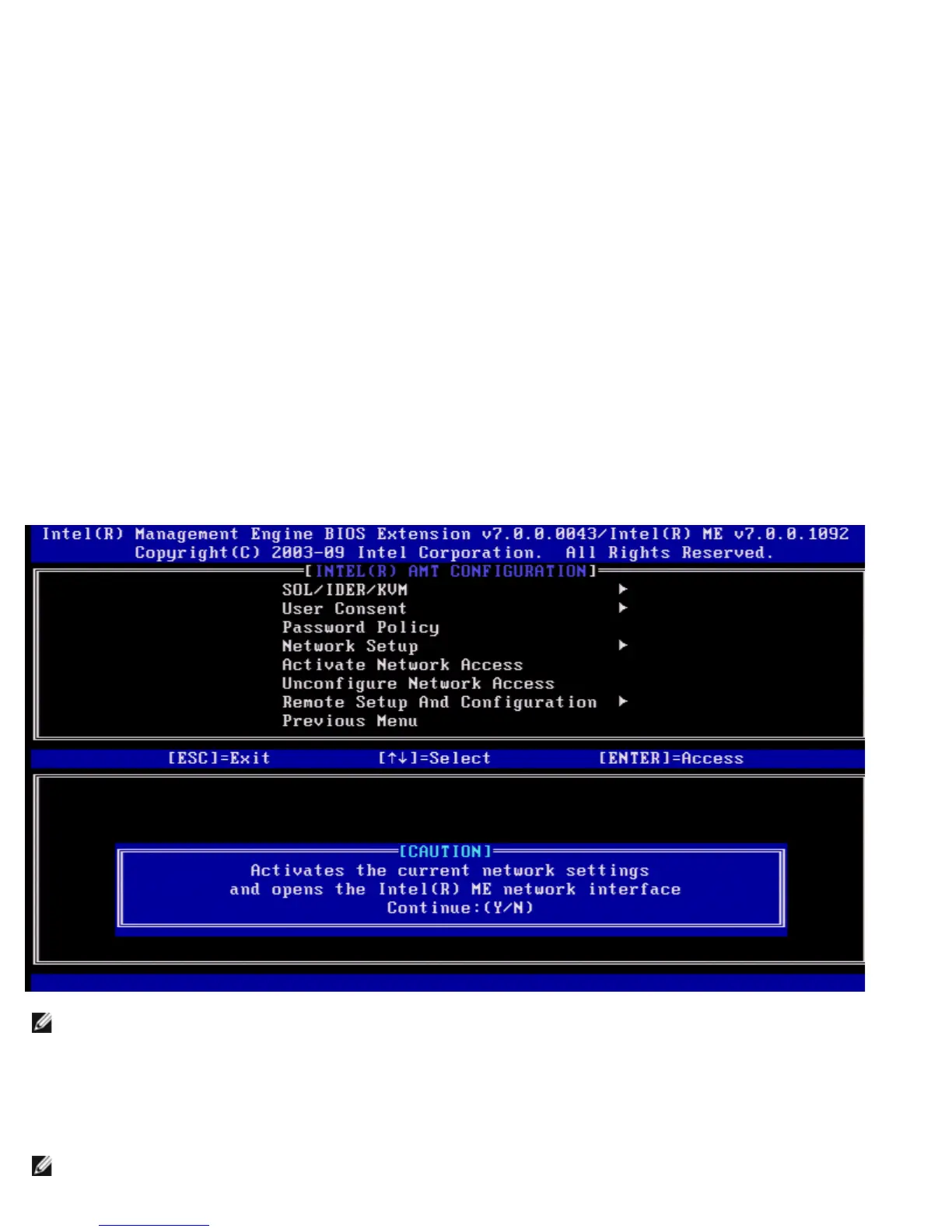 Under the Intel AMT Configuration page select Activate Network Access and press <Enter>.