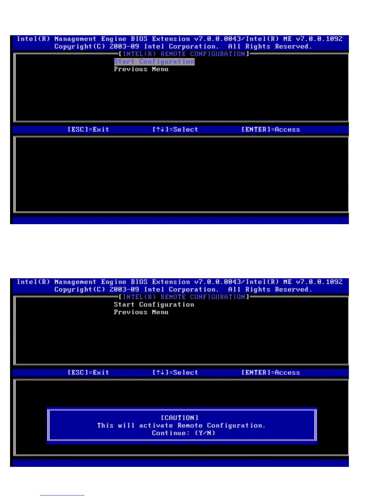 Under the Intel Remote Configuration menu select Start Configuration and press <Enter>.