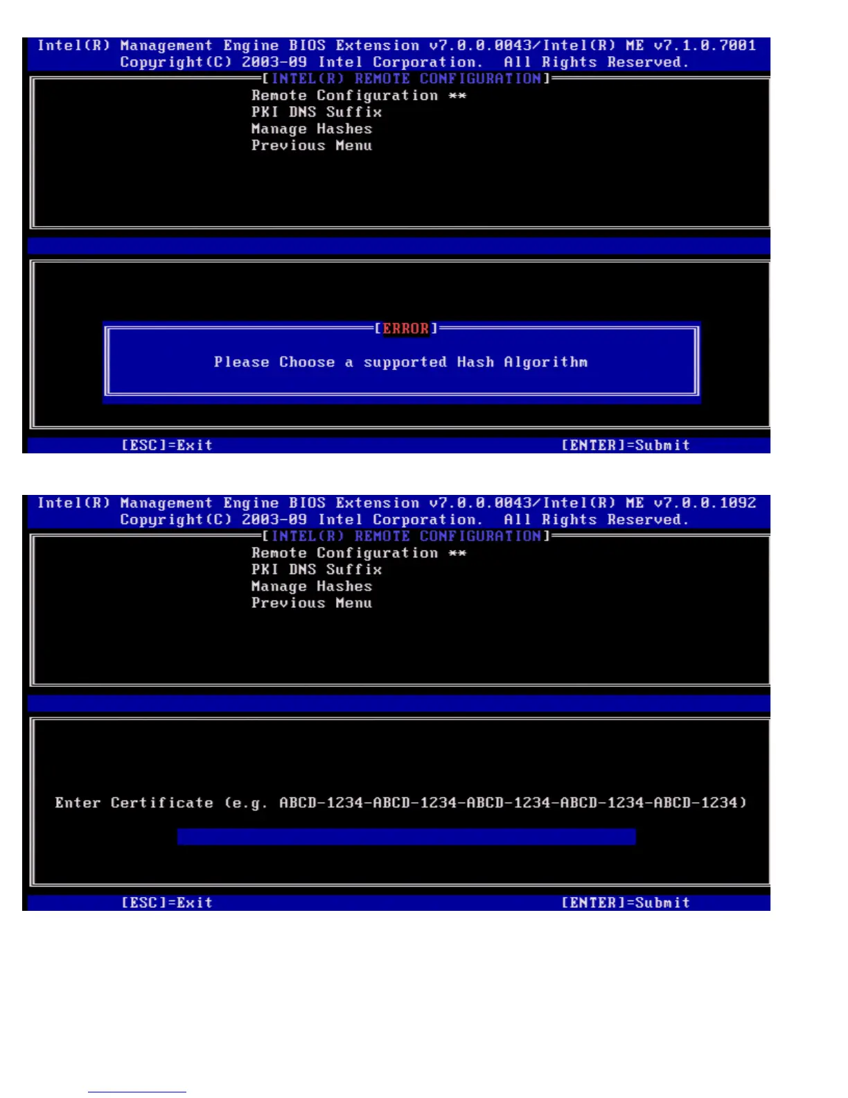 entered in the correct format, the message "Invalid Hash Certificate Entered - Try Again" is displayed. When you press