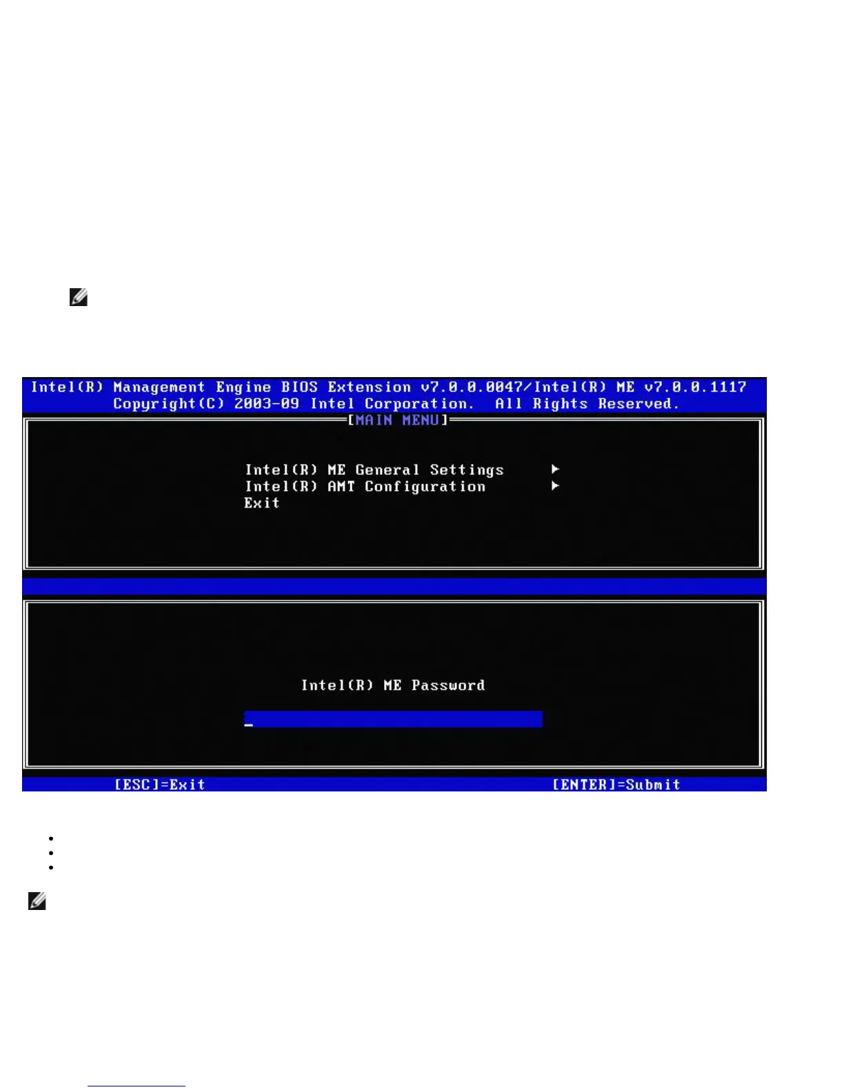 NOTE: Intel MEBx will display only detected options. If one or more of these options does not appear, verify that the