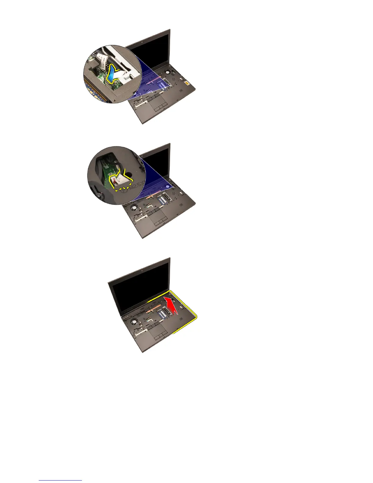 19. Release the tabs along the edges of the palmrest.