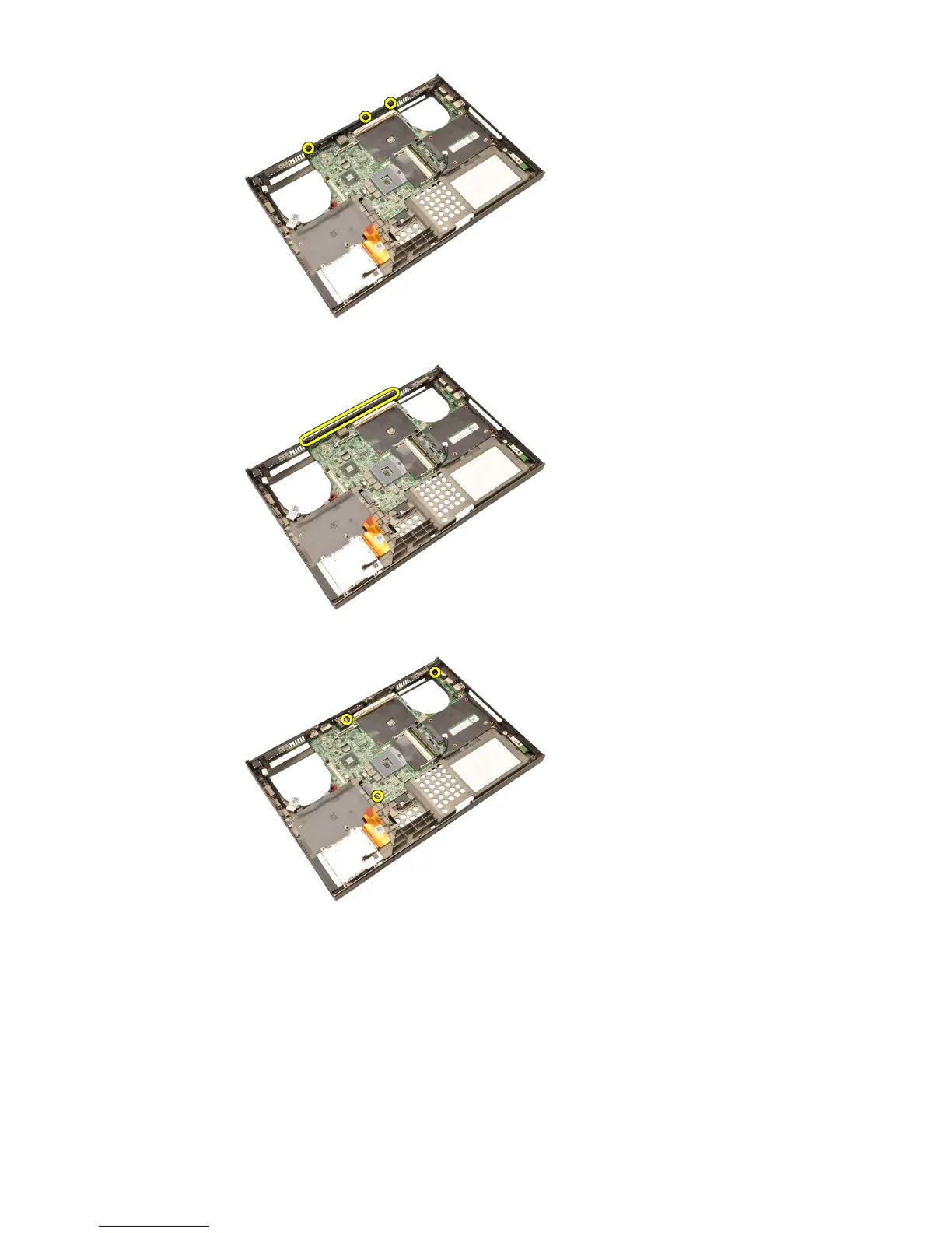 27. Remove the screws securing the system board in place.