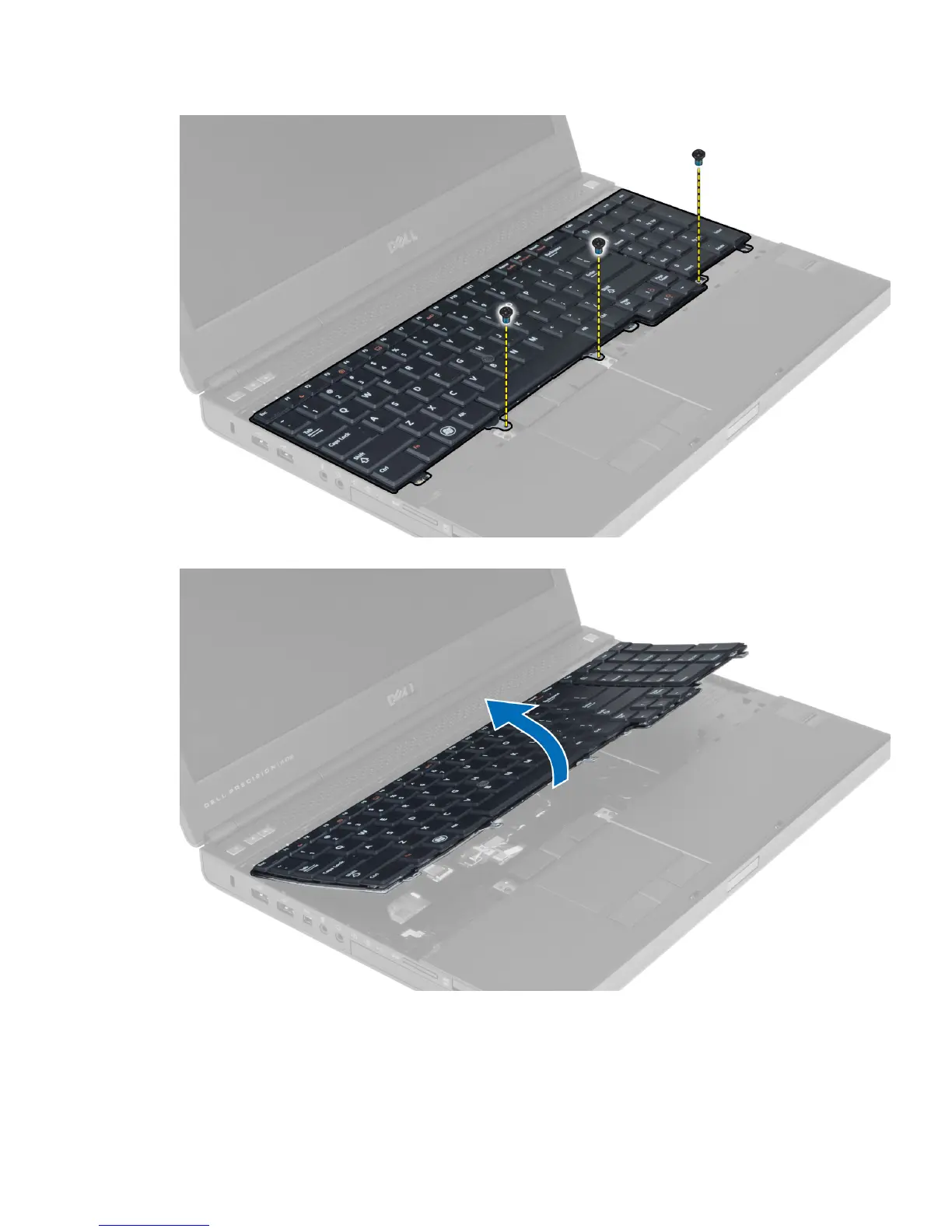 5. Disconnect the keyboard-data cable from the system board and remove the keyboard.