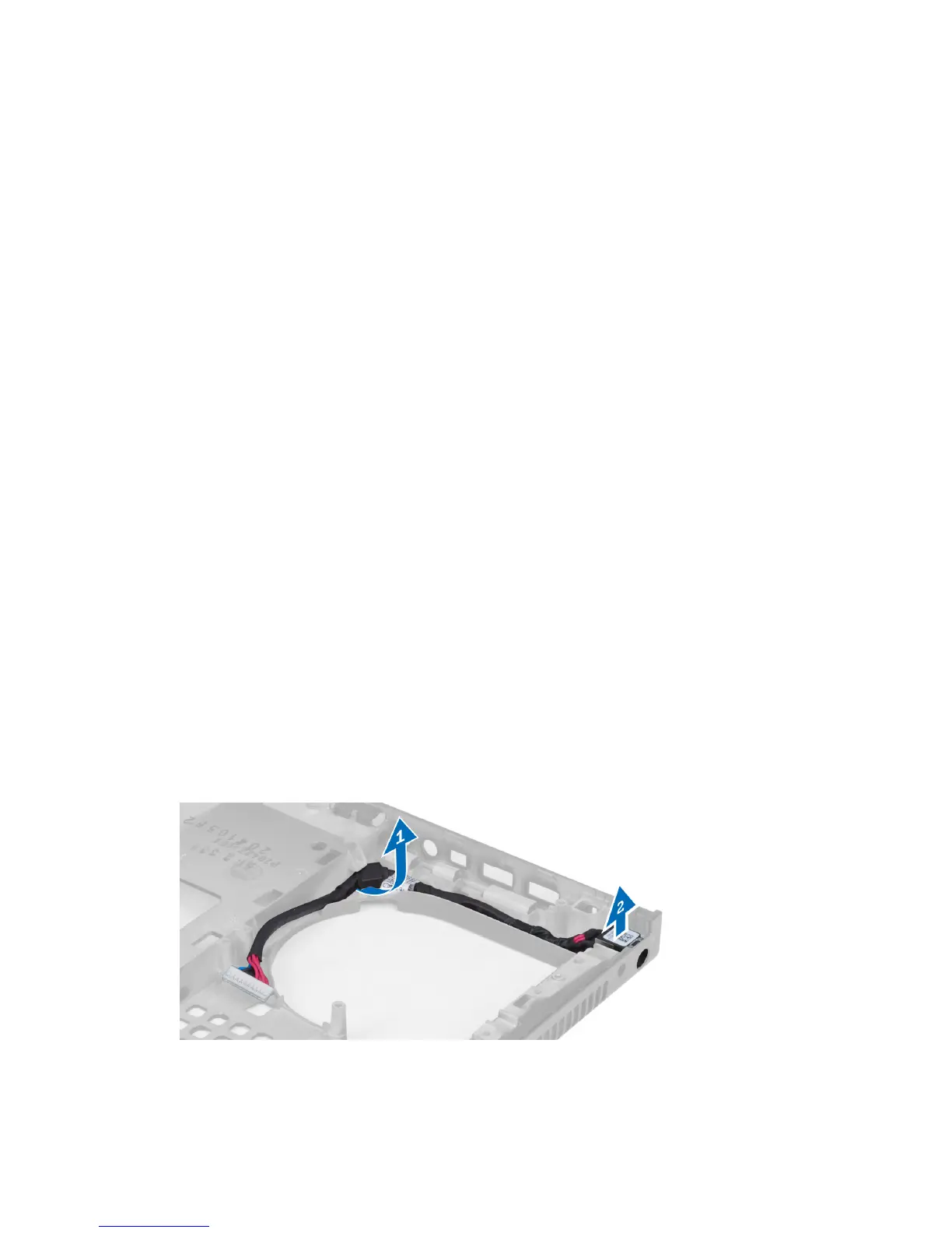3. Un-route and lift up the power-connector cable from the chassis to remove the power-connector port.