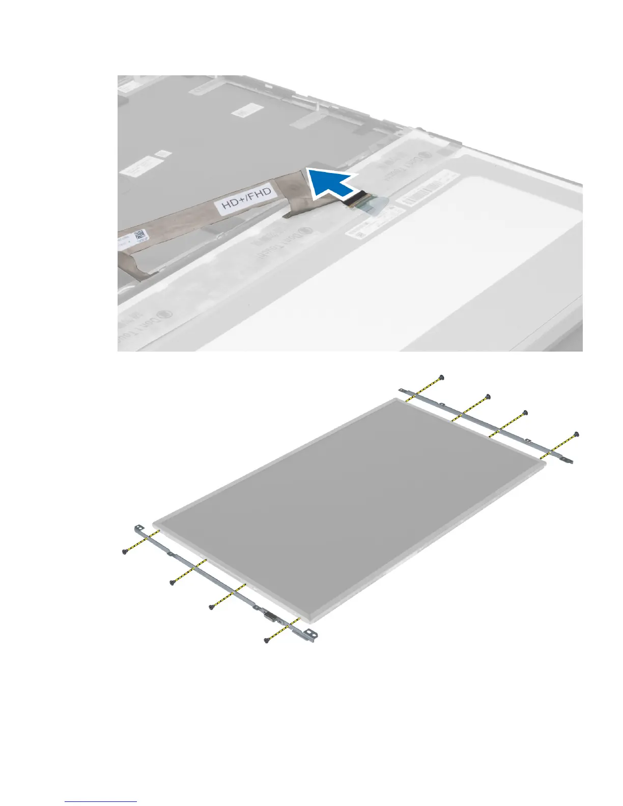 6. Remove the screws that secure the display brackets to the display panel. Remove the display brackets.