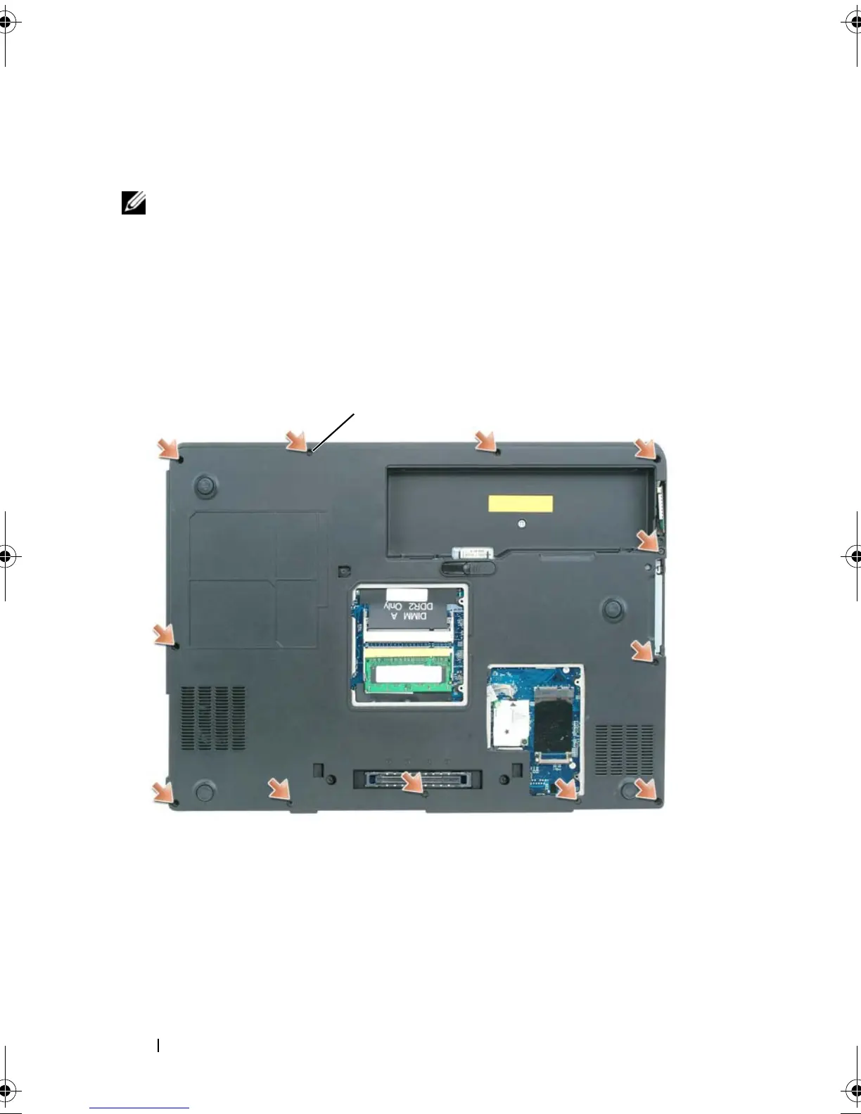 Turn the computer over and remove the 12 M2.5 x 8-mm screws from the