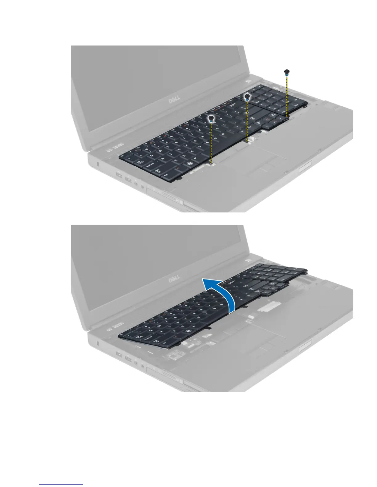 5. Disconnect the keyboard-data cable from the system board and remove the keyboard.