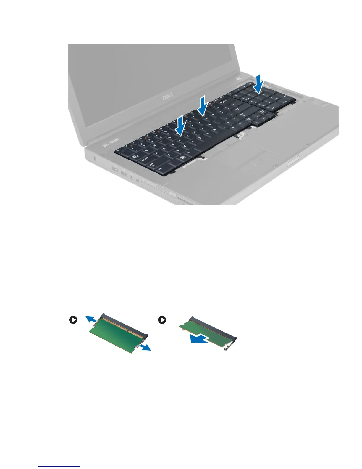 3. Pry the retention clips away from the primary memory until it pops up. Lift the primary memory and remove it from