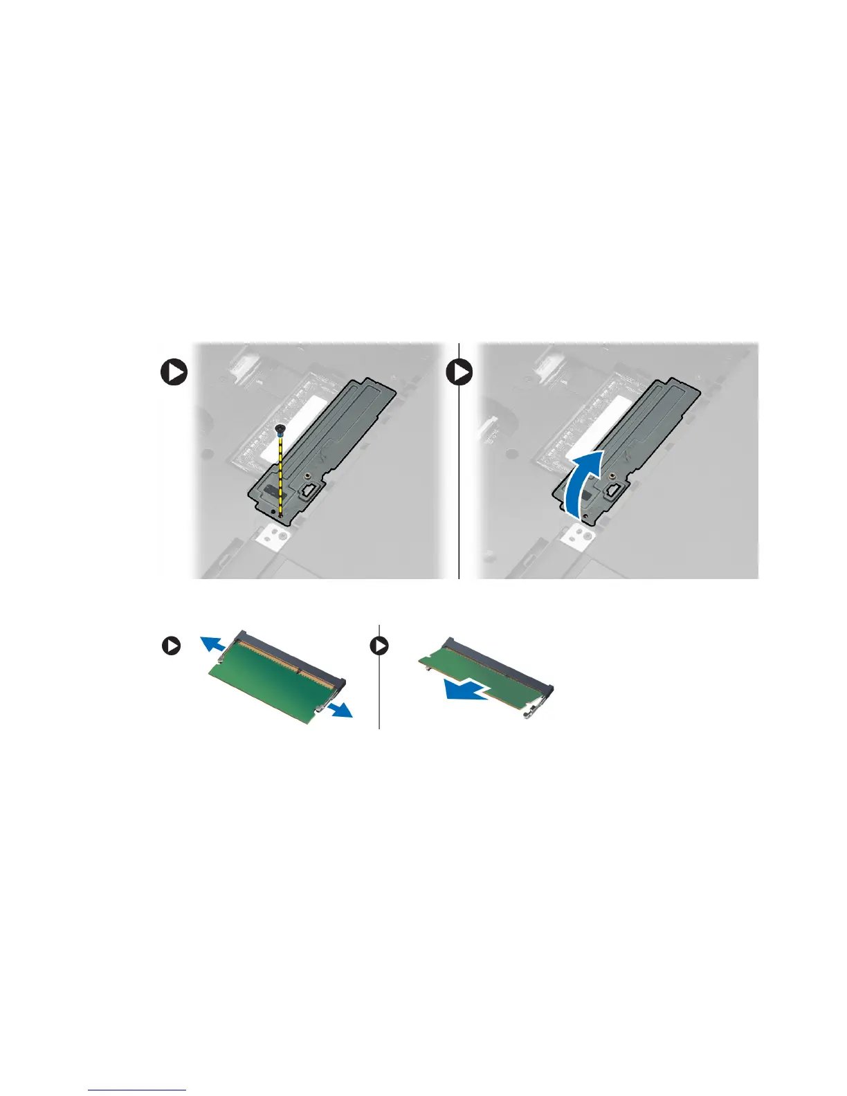4. Pry the retention clips away from the memory module until it pops up. Lift up the memory module and remove it from