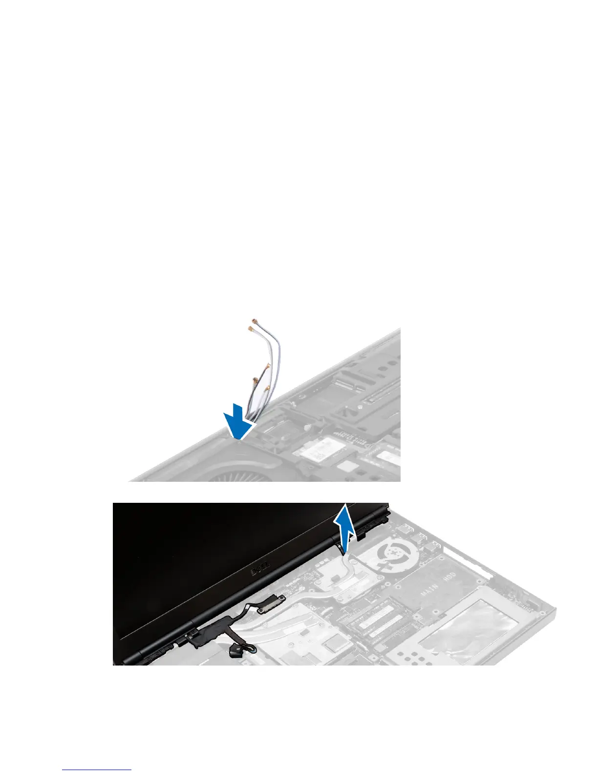 3. Disconnect the antenna cables from the wireless cards, and push them down the routing hole.