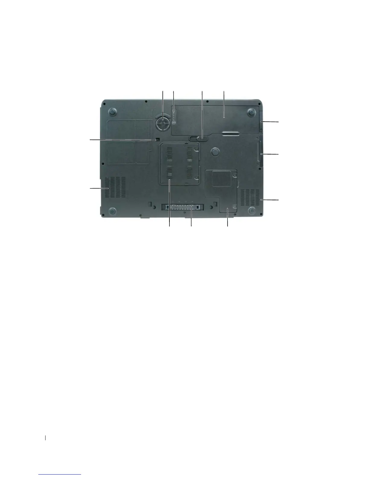 4 battery 8 Mini-Card/modem cover 12 optical-drive security screw