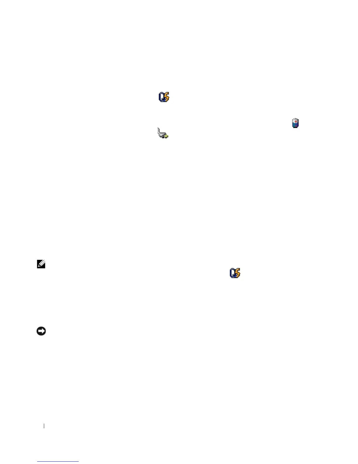注意 : 若要避免資料遺失或損毀,請在收到電池電量不足警告之後立即儲存您的工作。 然後將電腦與電