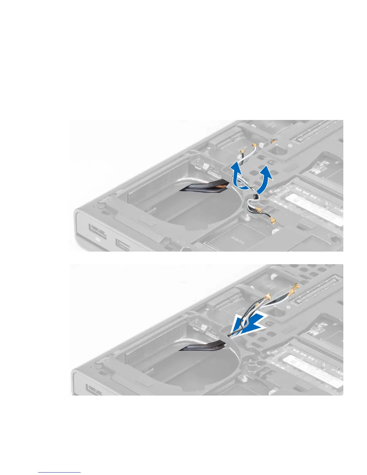 3. Disconnect and un-route any antenna cables connected to the installed wireless cards.