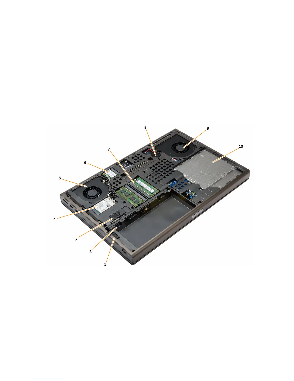 3. battery release latch 4. WWAN card / mSATA SSD card