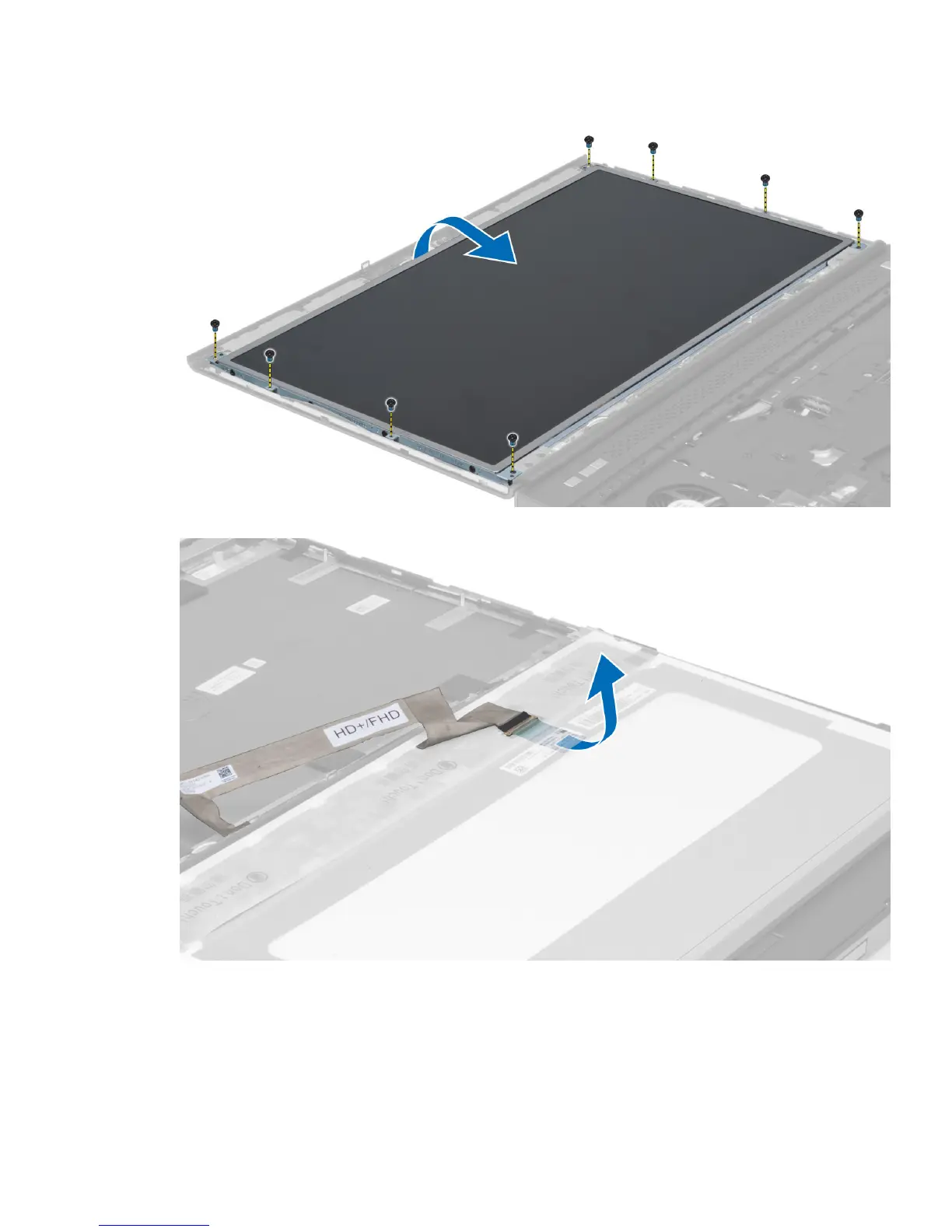 4. Peel back the adhesive tape that secures the LVDS cable to the display panel.