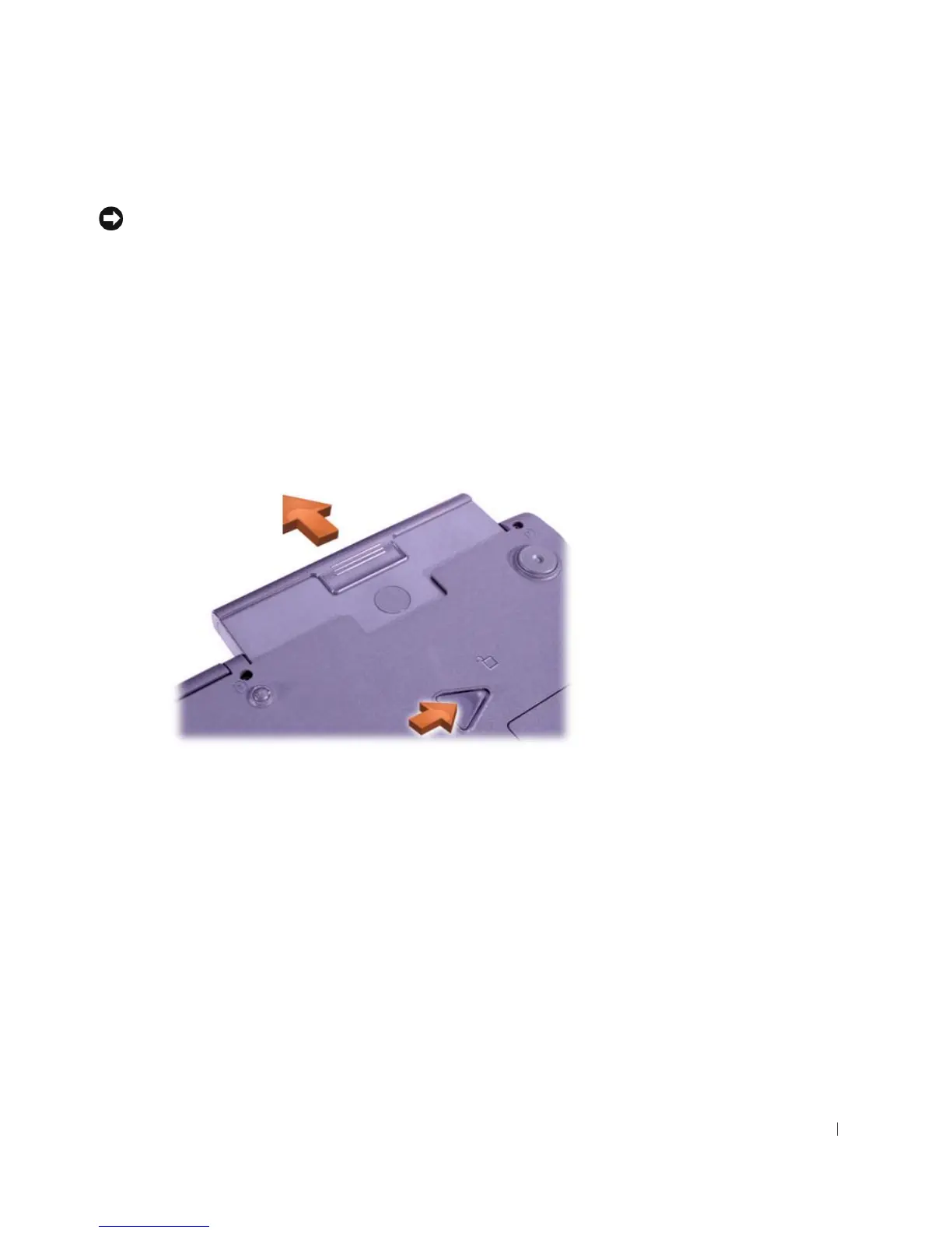 2 Lossa och håll i batterifackets, eller modulfackets, låsflik på datorns