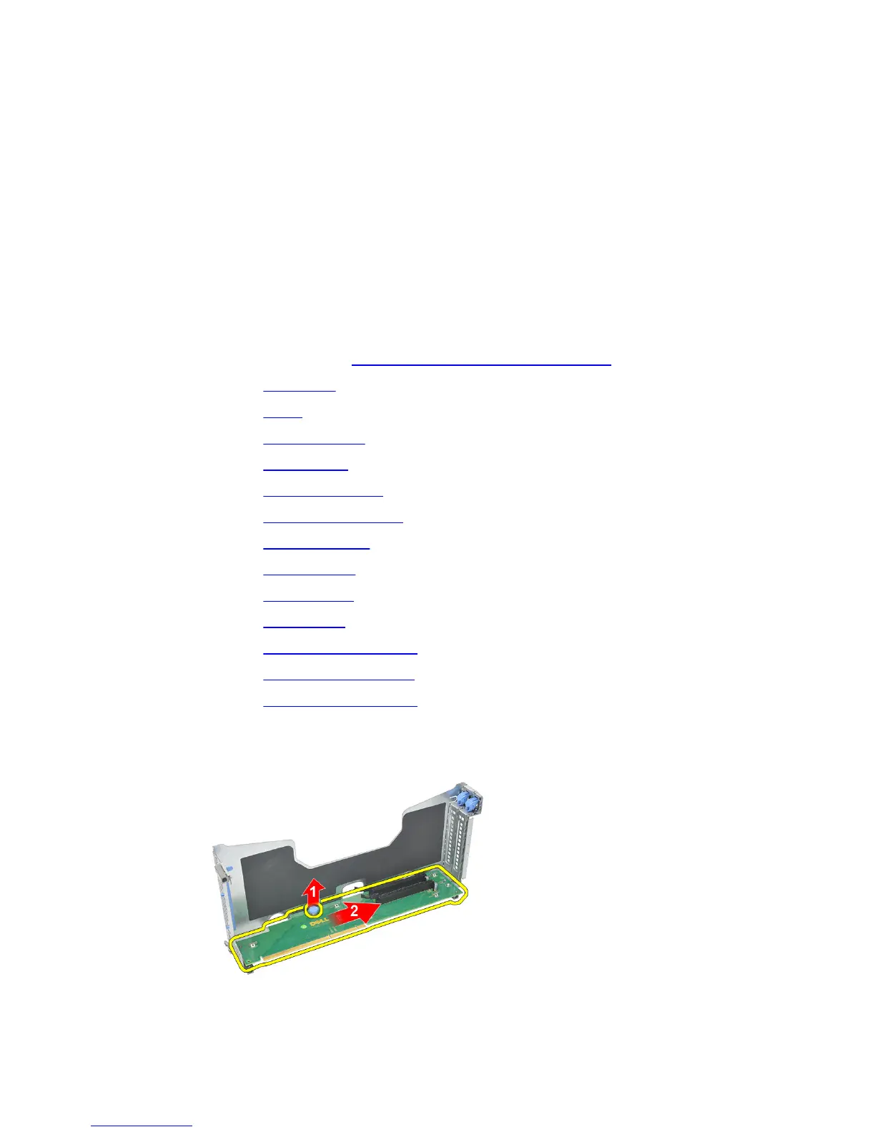 15. Lift the release tab upwards and gently slide the center riser board towards the