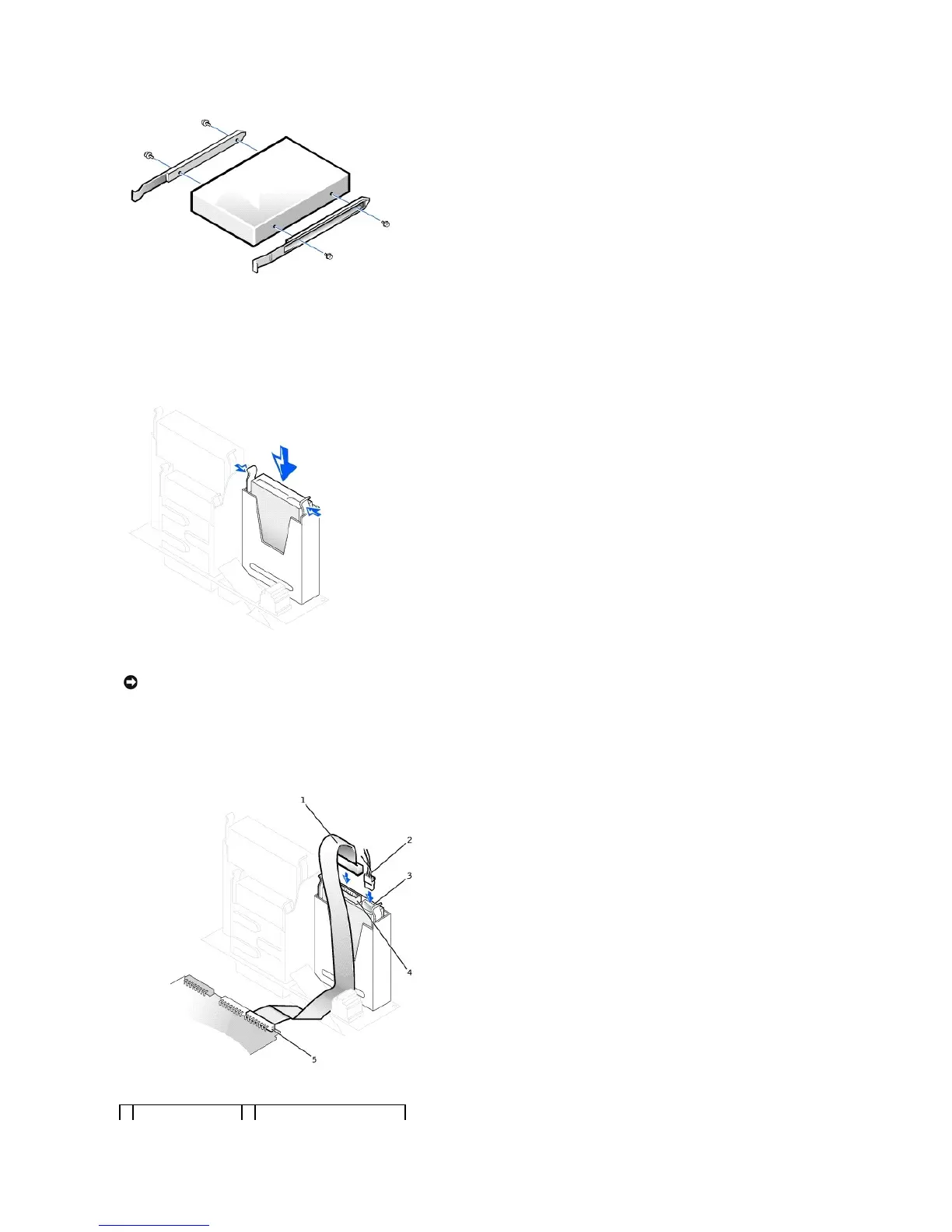 8. Attach the bracket rails to the new hard drive by aligning the four screw holes of the drive and bracket and then inserting and tightening the screws